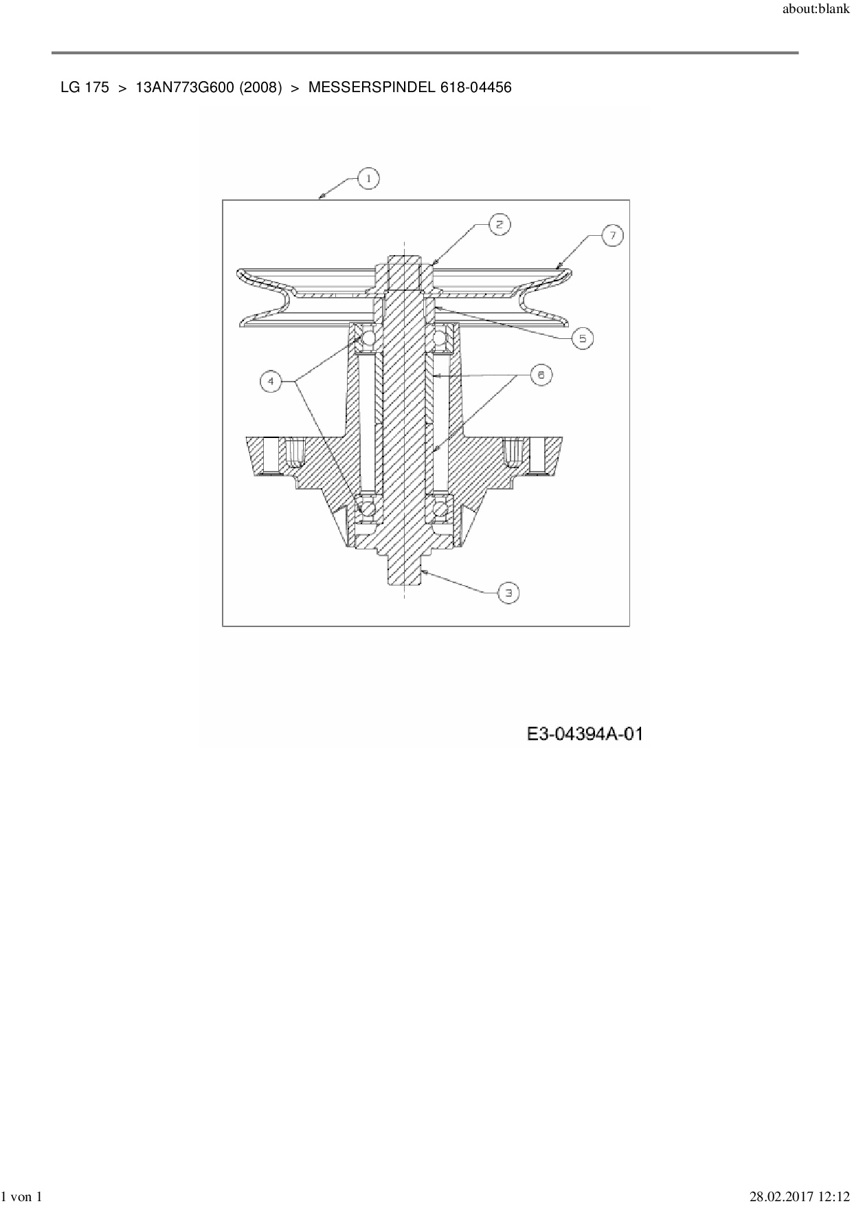 Ersatzteile für Rasentraktor MTD LG 175 aus der Zeichnung Messerspindel 618-04456:
