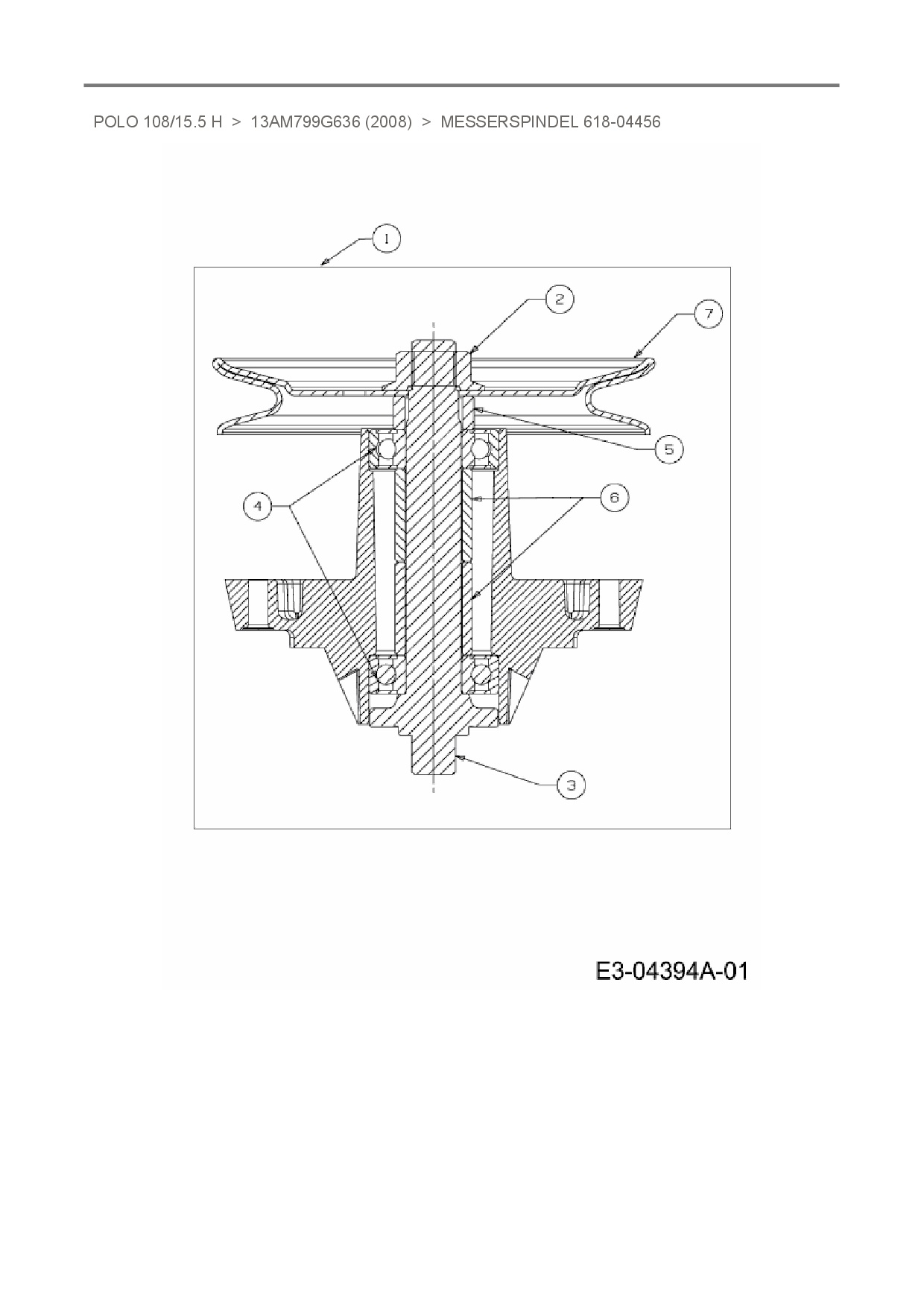 Ersatzteile für Rasentraktor Oleo-Mac Polo 108/15.5 H aus der Zeichnung Messerspindel 618-04456: