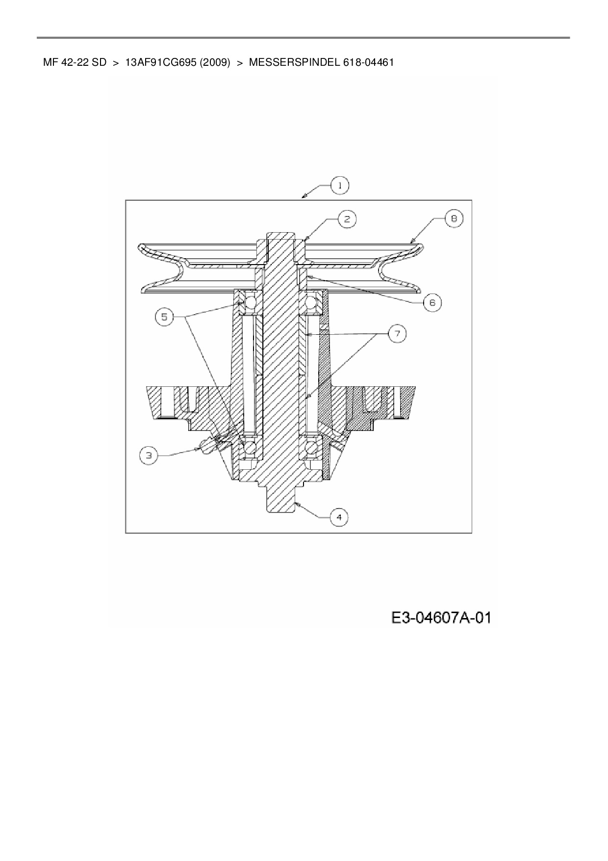 Ersatzteile für Rasentraktor Massey Ferguson MF 42-22 SD aus der Zeichnung Messerspindel 618-04461: