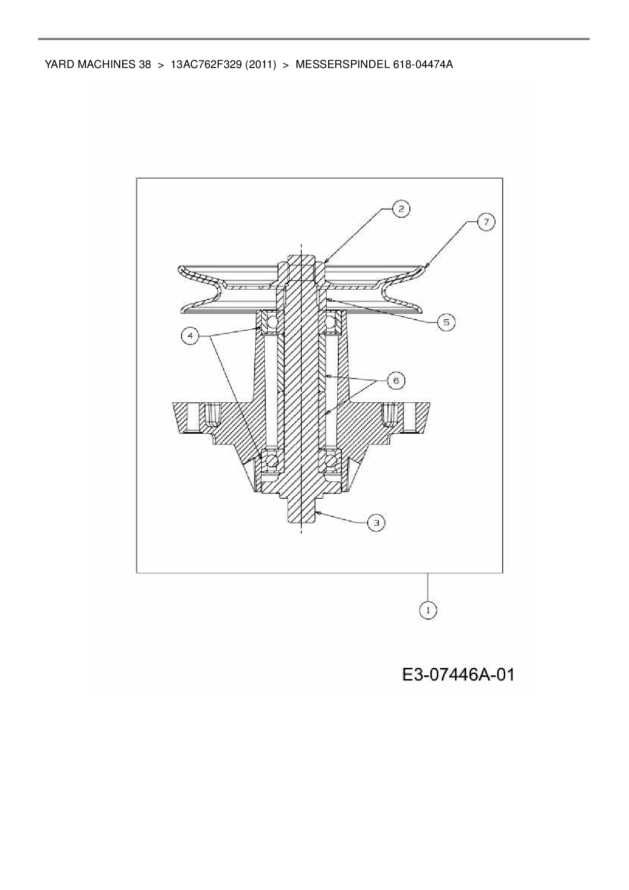 Ersatzteile für Rasentraktor MTD Yard Machines 38 aus der Zeichnung Messerspindel 618-04474A: