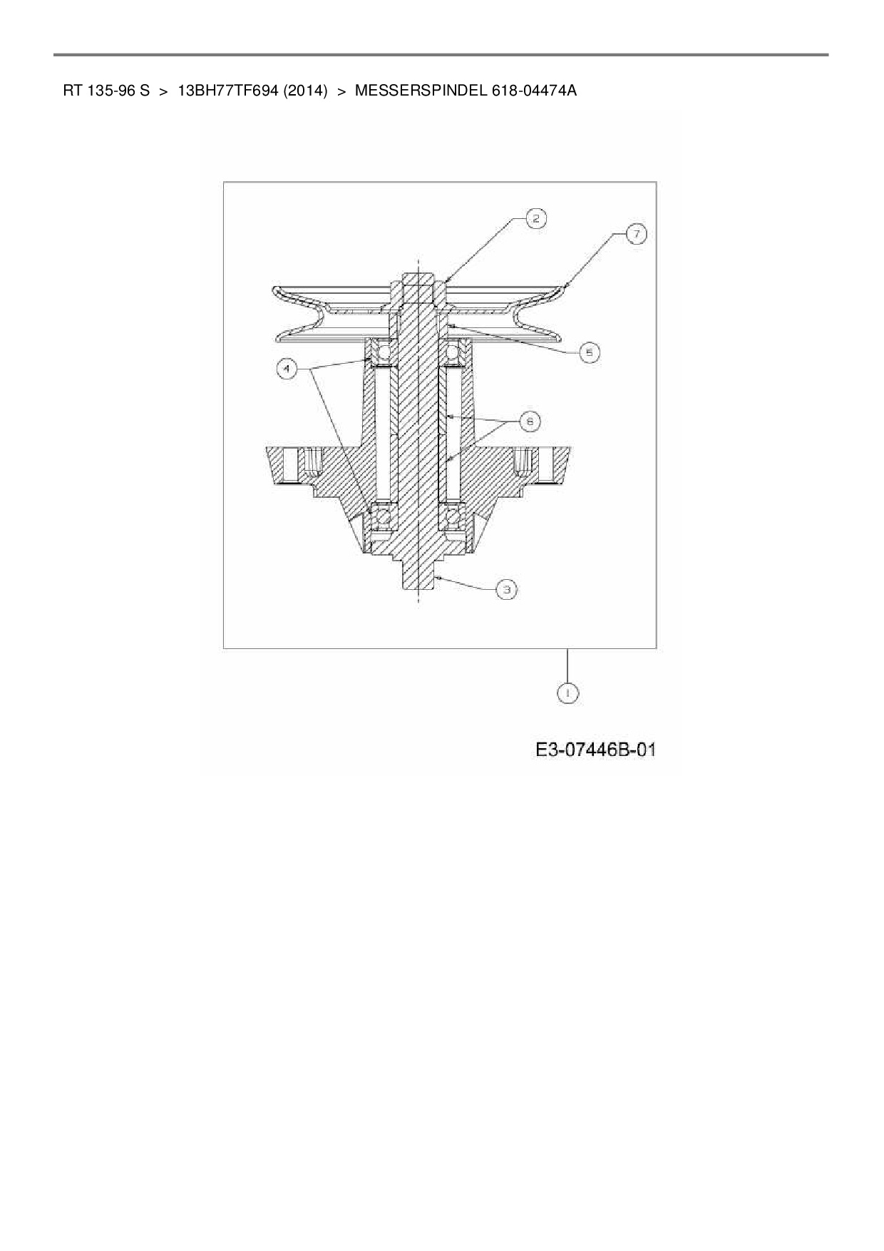 Ersatzteile für Rasentraktor Lux Tools RT 135-96 S aus der Zeichnung Messerspindel 618-04474A: