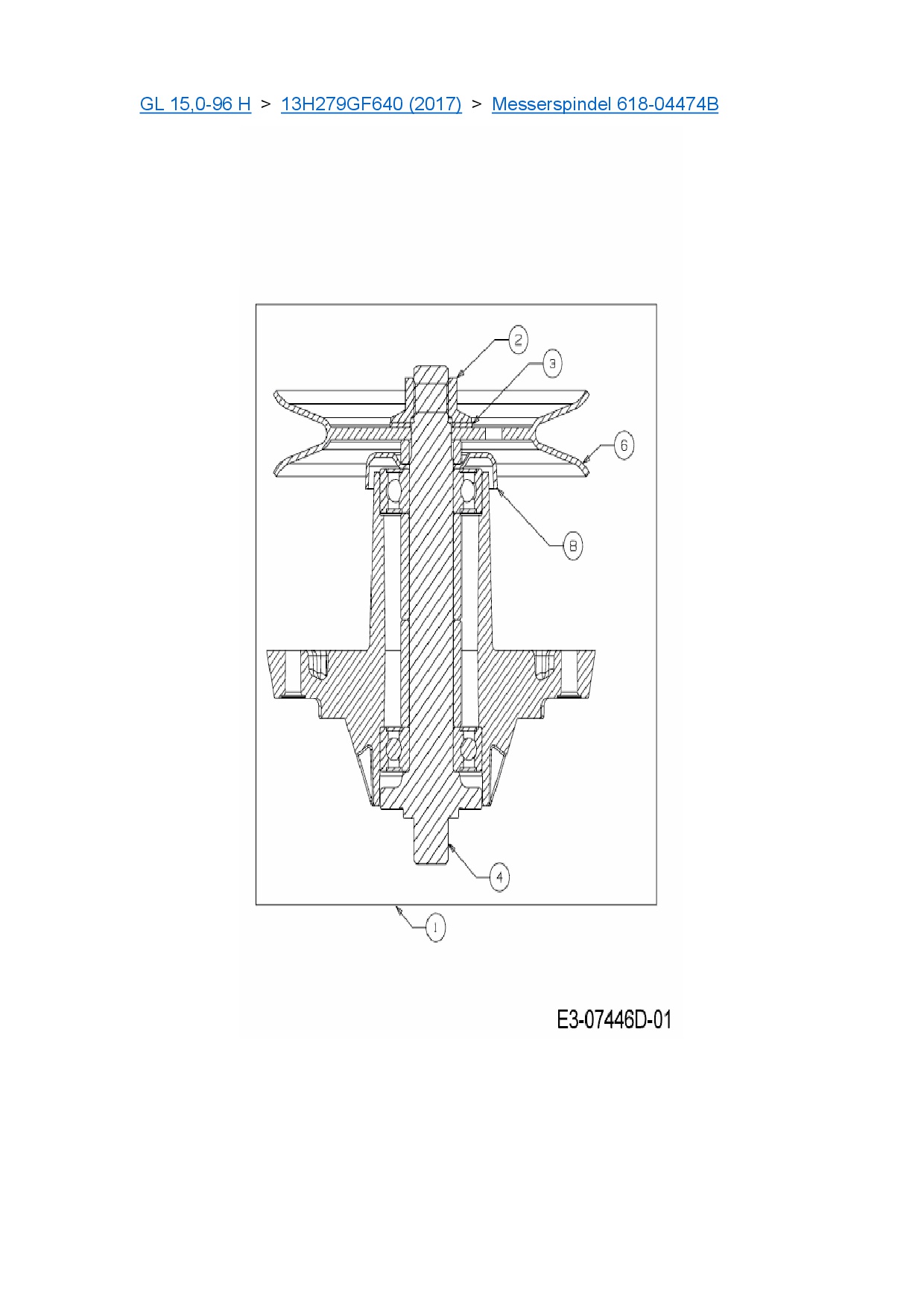 Ersatzteile für Rasentraktor Gartenland GL 15,0-96 H aus der Zeichnung Messerspindel 618-04474B: