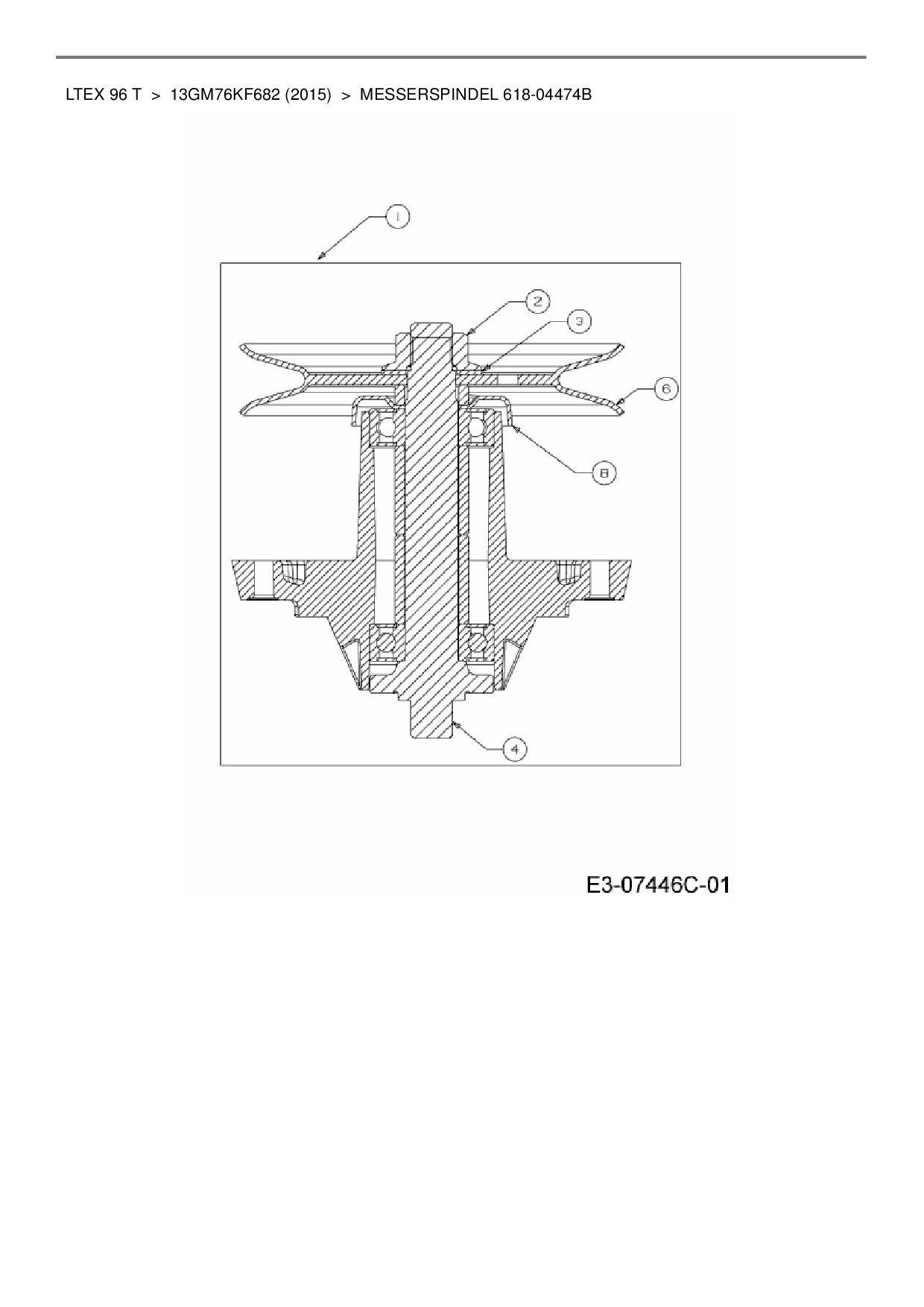 Ersatzteile für Rasentraktor MTD LTEX 96 T aus der Zeichnung Messerspindel 618-04474B: