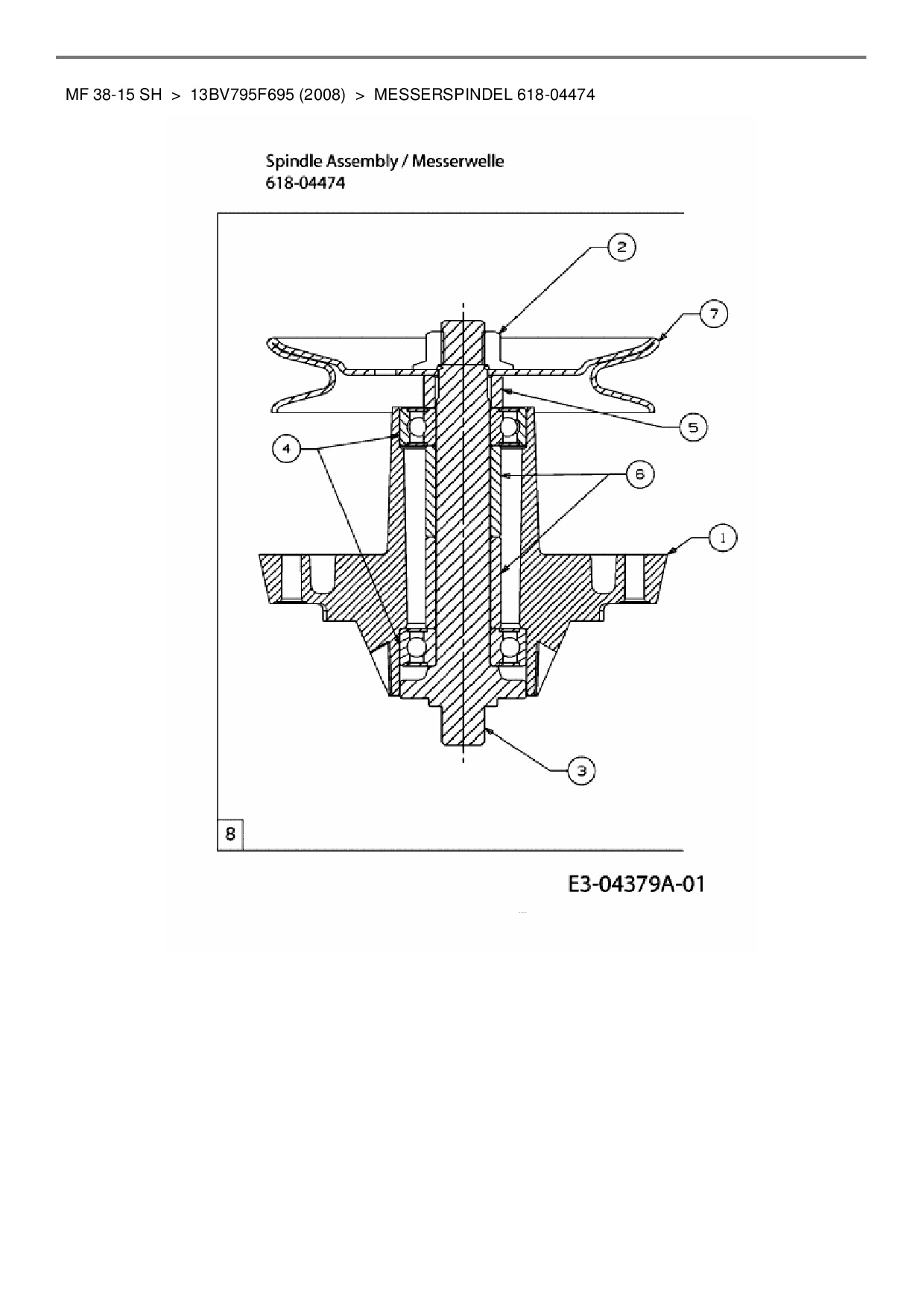 Ersatzteile für Rasentraktor Massey Ferguson MF 38-15 SH aus der Zeichnung Messerspindel 618-04474: