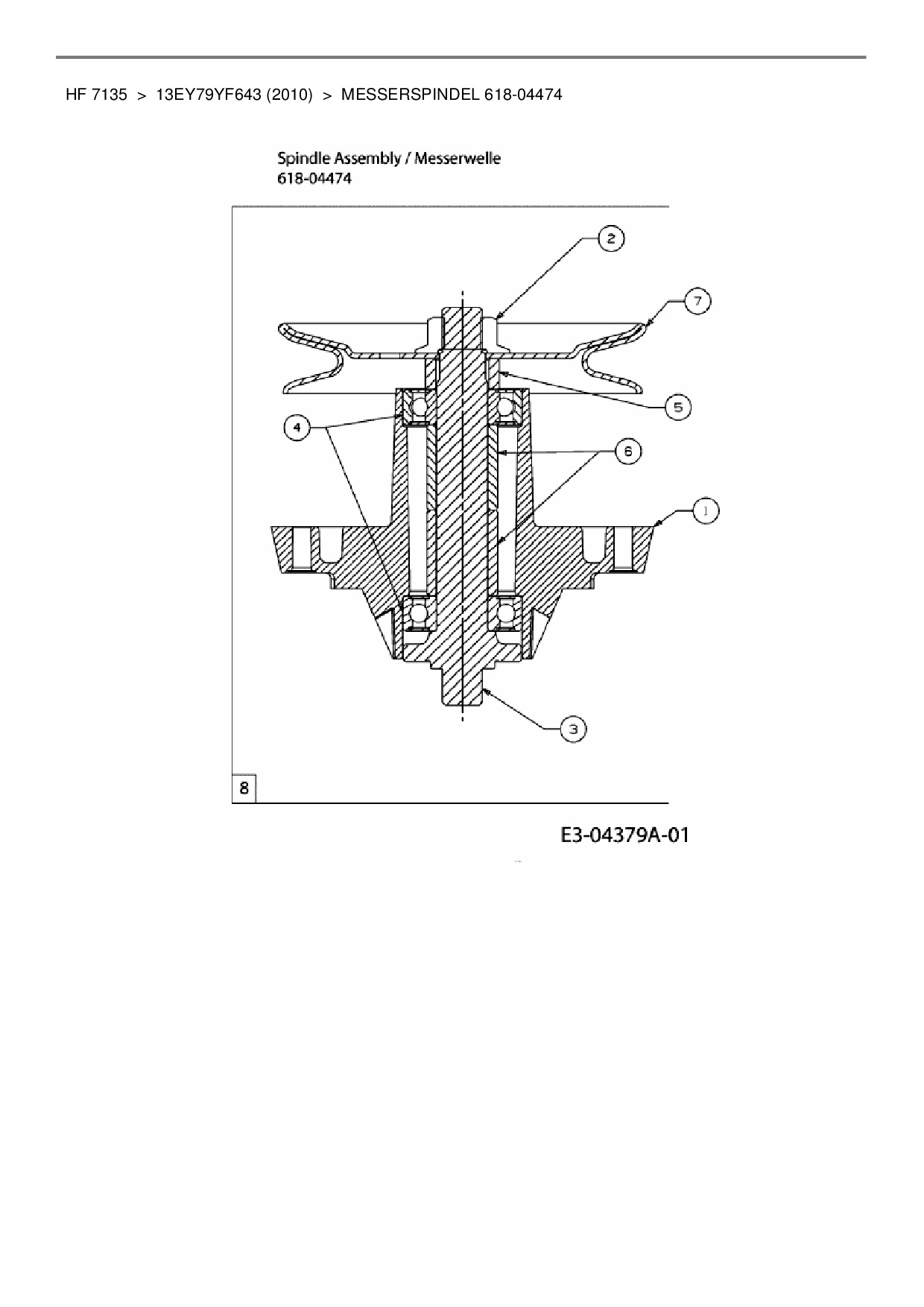 Ersatzteile für Rasentraktor Yard-Man HF 7135 aus der Zeichnung Messerspindel 618-04474: