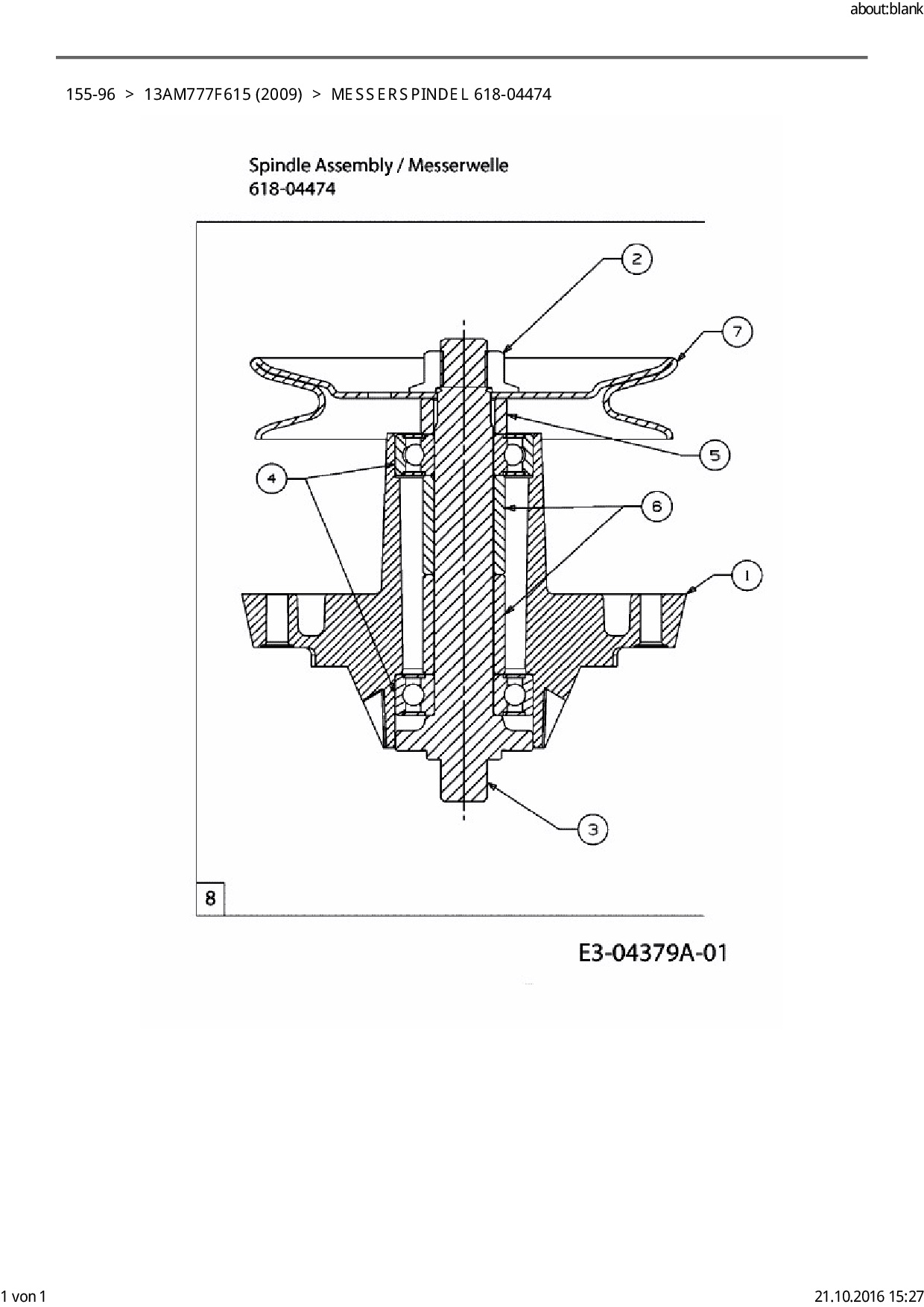 Ersatzteile für Rasentraktor Black Edition 155-96 aus der Zeichnung Messerspindel 618-04474: