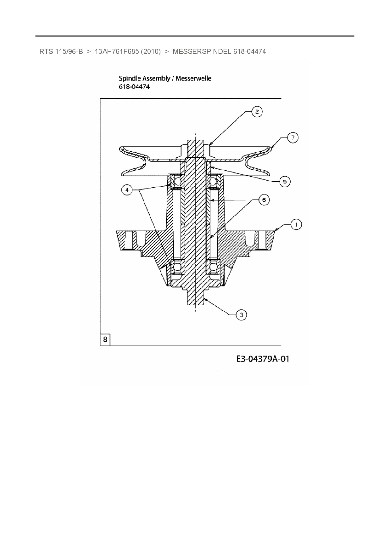 Ersatzteile für Rasentraktor Sunline RTS 115/96-B aus der Zeichnung Messerspindel 618-04474: