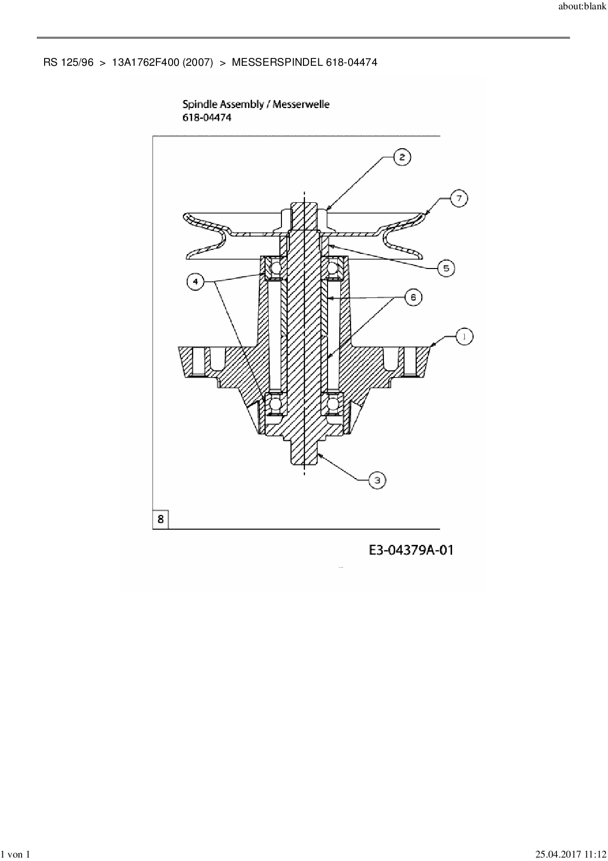 Ersatzteile für Rasentraktor MTD RS 125/96 aus der Zeichnung Messerspindel 618-04474: