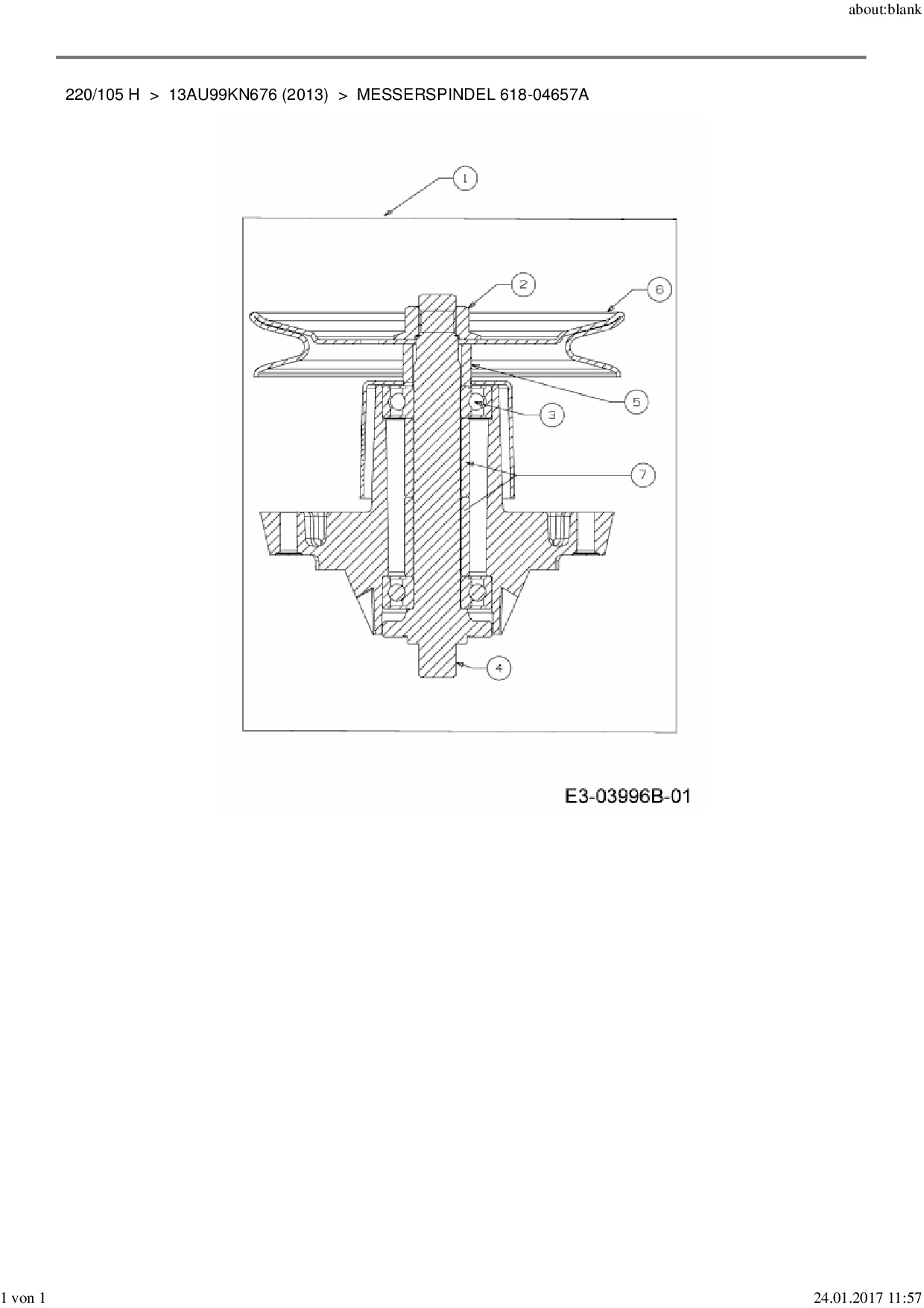 Ersatzteile für Rasentraktor MTD 220/105 H aus der Zeichnung Messerspindel 618-04657A: