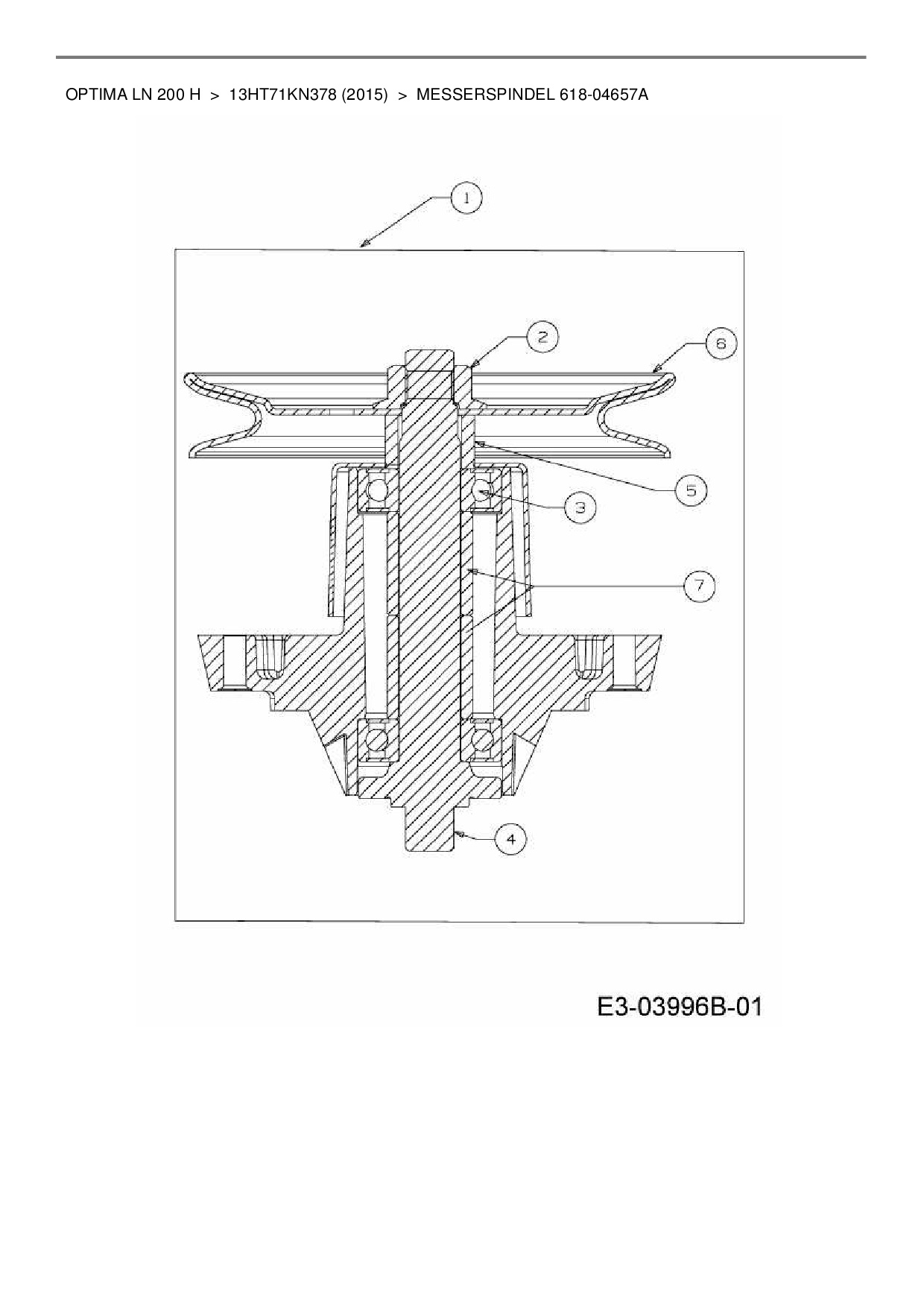 Ersatzteile für Rasentraktor MTD Optima LN 200 H aus der Zeichnung Messerspindel 618-04657A: