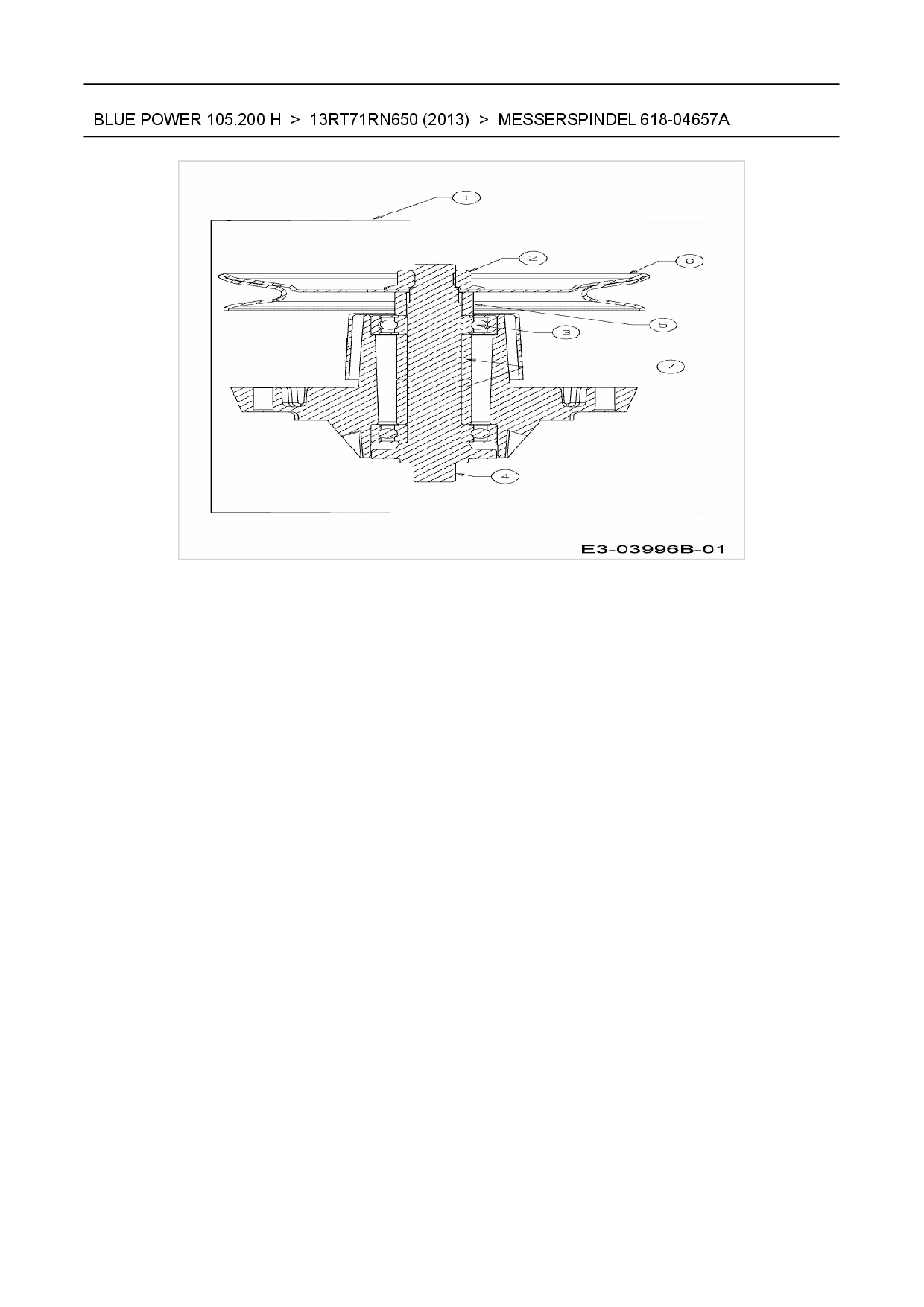 Ersatzteile für Rasentraktor Wolf-Garten Blue Power 105.200 H aus der Zeichnung Messerspindel 618-04657A:
