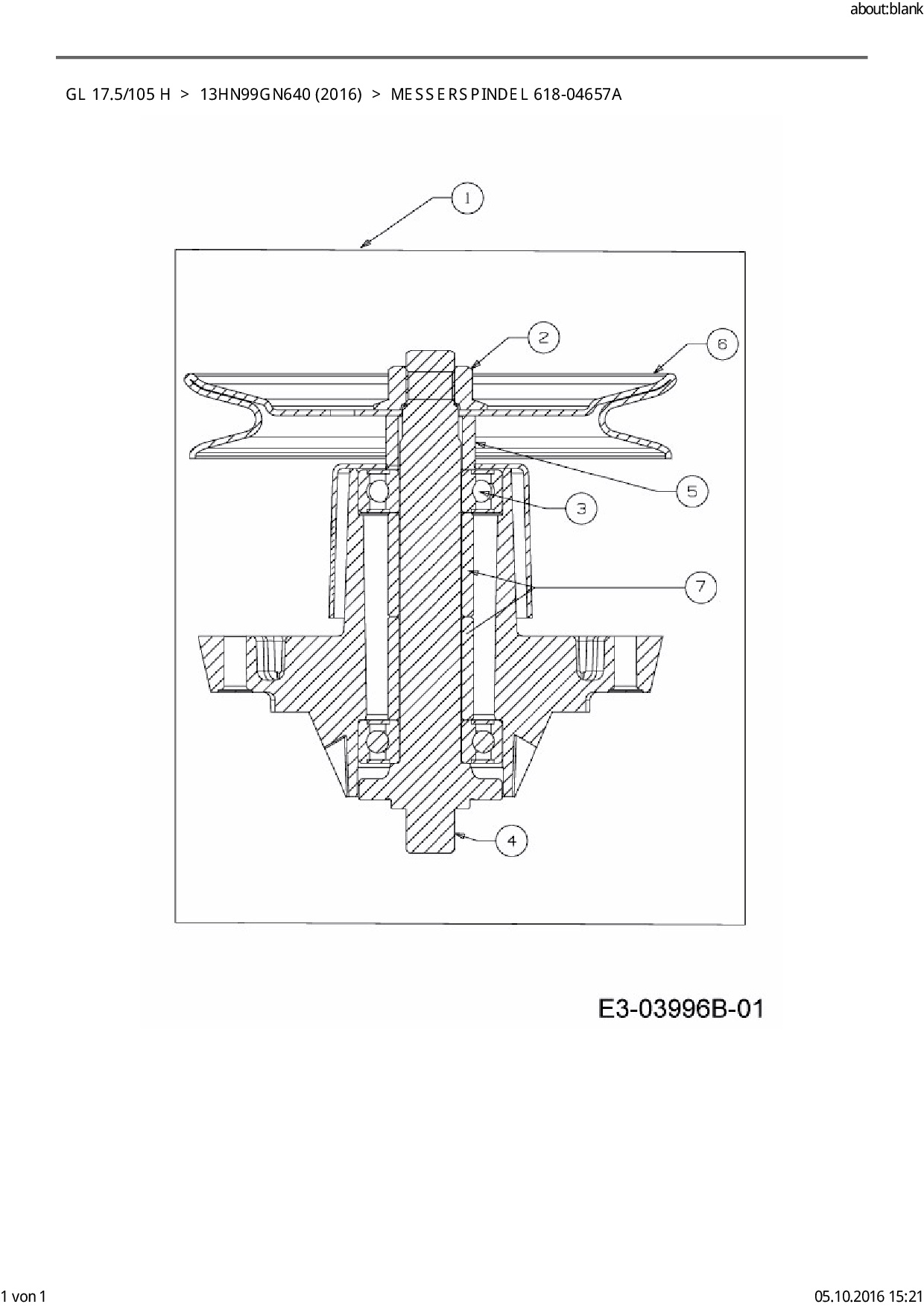 Ersatzteile für Rasentraktor Gartenland GL 17.5/105 H aus der Zeichnung Messerspindel 618-04657A: