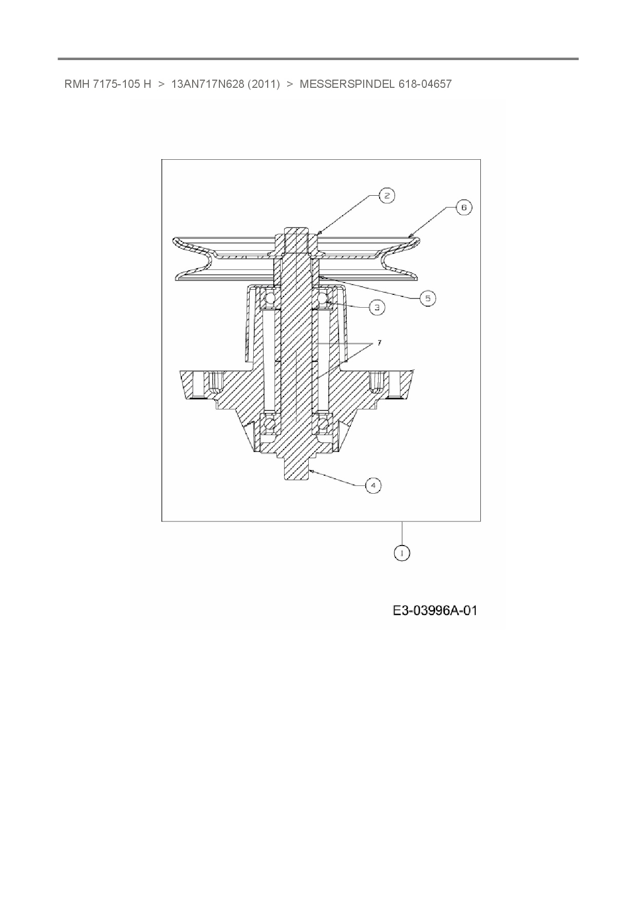 Ersatzteile für Rasentraktor Raiffeisen RMH 7175-105 H aus der Zeichnung Messerspindel 618-04657: