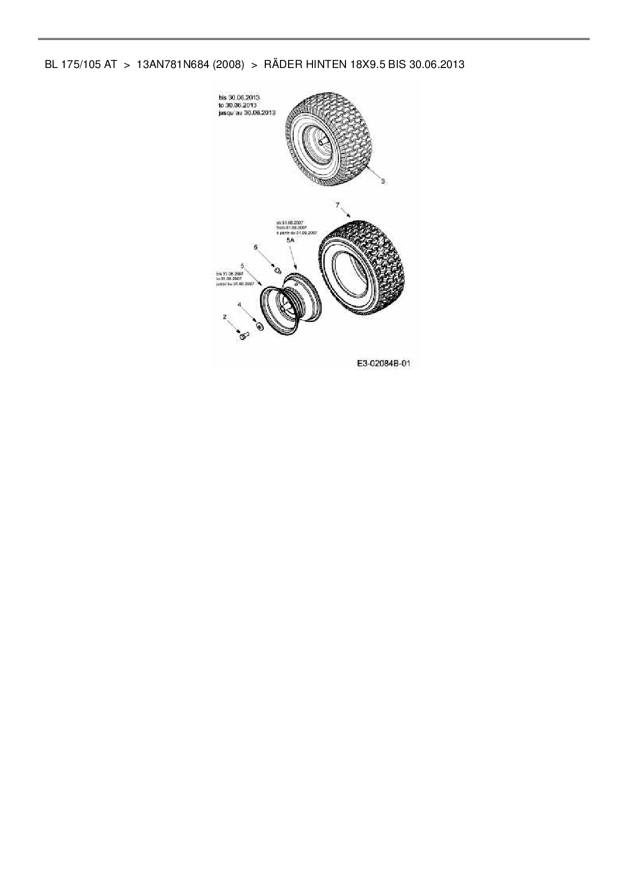 Ersatzteile für Rasentraktor Bolens BL 175/105 AT aus der Zeichnung Messerspindel 618-04657: