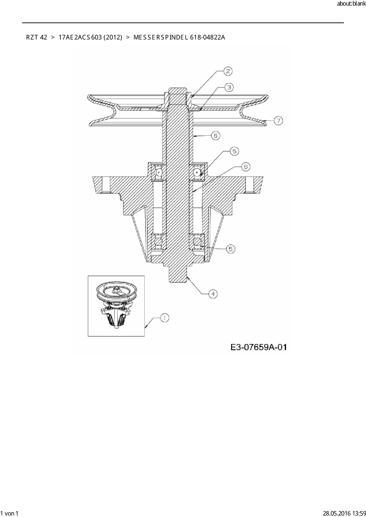 Ersatzteile für Zero Turn Cub Cadet RZT 42 aus der Zeichnung Messerspindel 618-04822A: