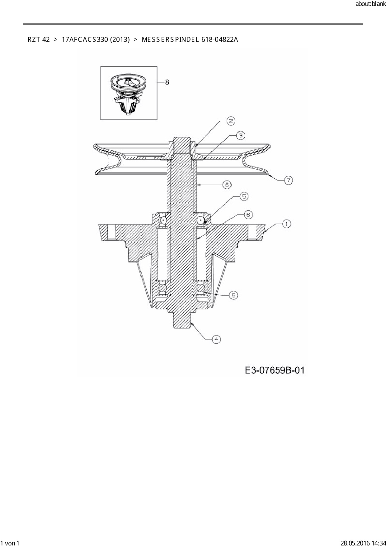Ersatzteile für Zero Turn Cub Cadet RZT 42 aus der Zeichnung Messerspindel 618-04822A: