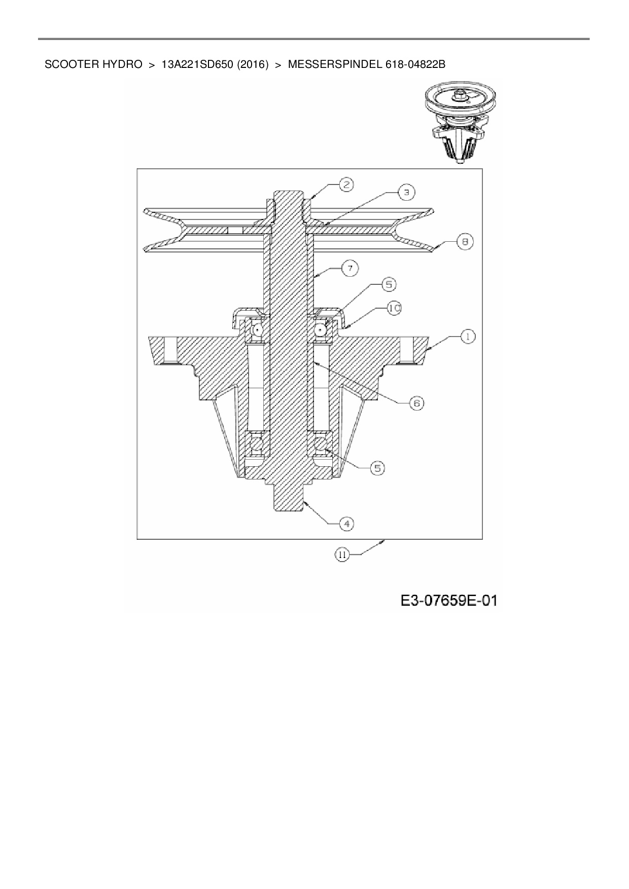 Ersatzteile für Rasentraktor Wolf-Garten Scooter Hydro aus der Zeichnung Messerspindel 618-04822B: