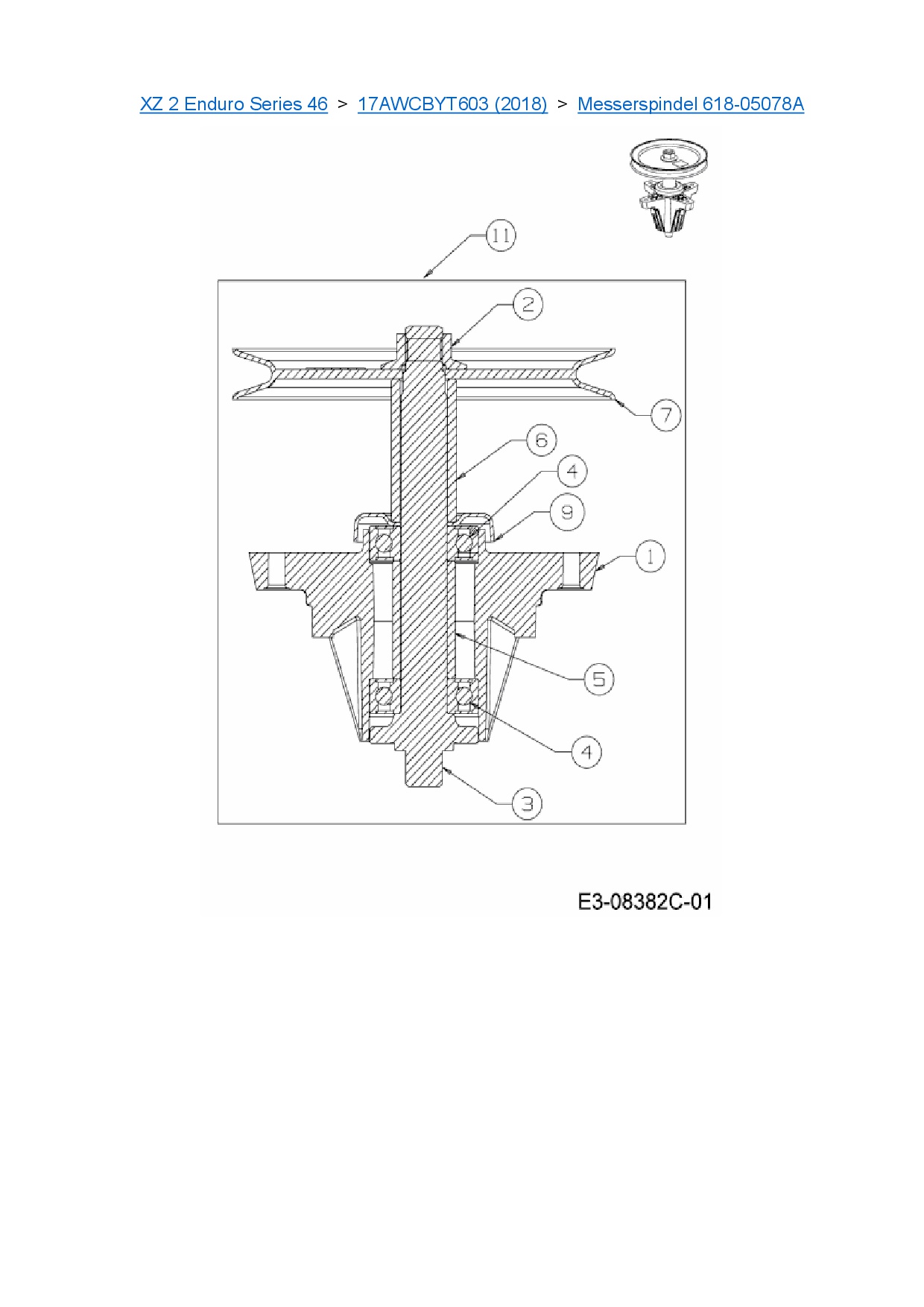 Ersatzteile für Zero Turn Cub Cadet XZ 2 Enduro Series 46 aus der Zeichnung Messerspindel 618-05078A:
