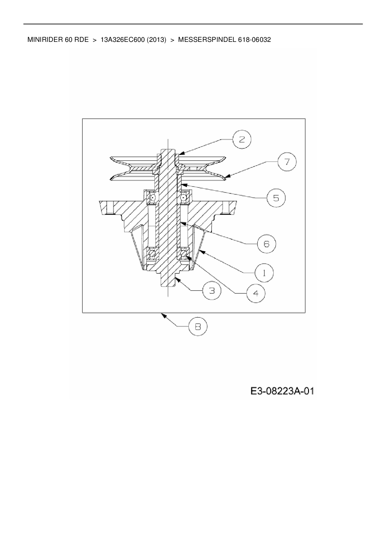 Ersatzteile für Rasentraktor MTD Minirider 60 RDE aus der Zeichnung Messerspindel 618-06032: