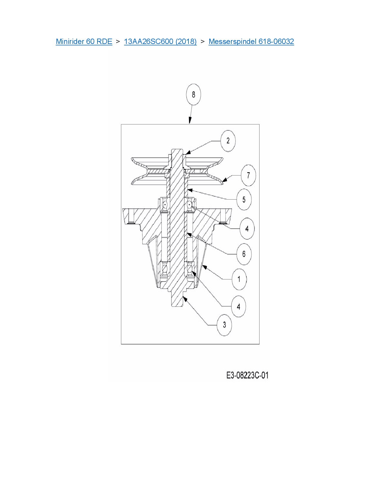 Ersatzteile für Rasentraktor MTD Minirider 60 RDE aus der Zeichnung Messerspindel 618-06032: