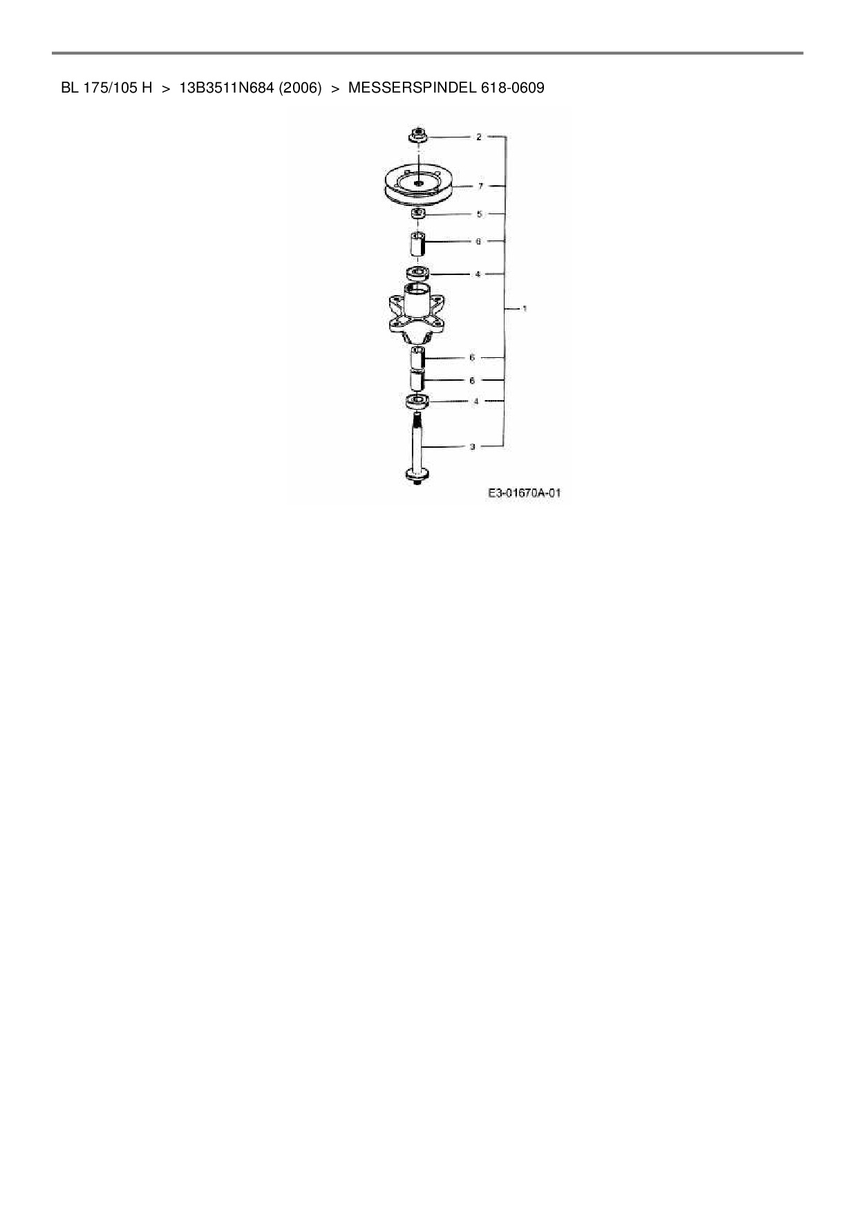 Ersatzteile für Rasentraktor Bolens BL 175/105 H aus der Zeichnung Messerspindel 618-0609: