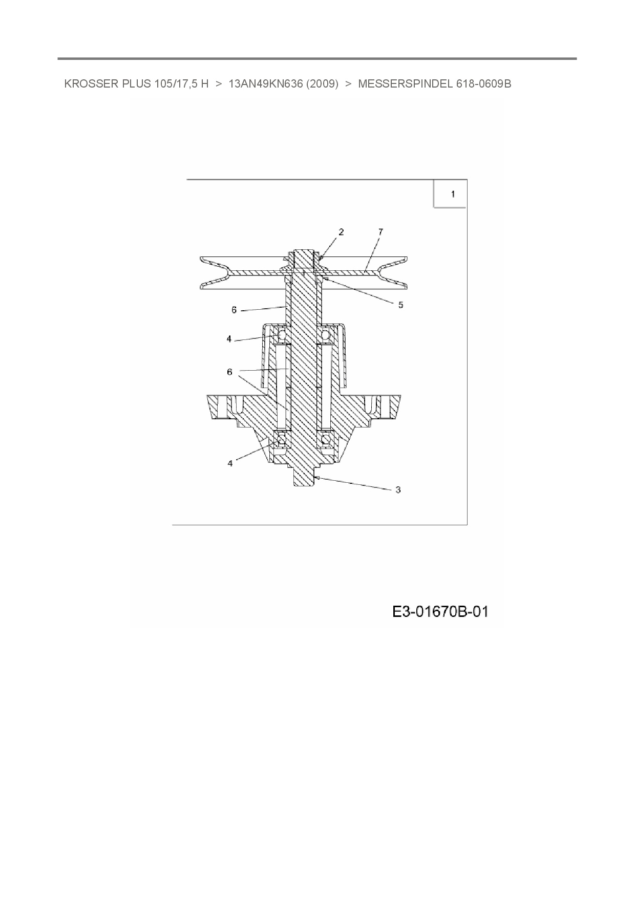 Ersatzteile für Rasentraktor Oleo-Mac Krosser Plus 105/17,5 H aus der Zeichnung Messerspindel 618-0609B: