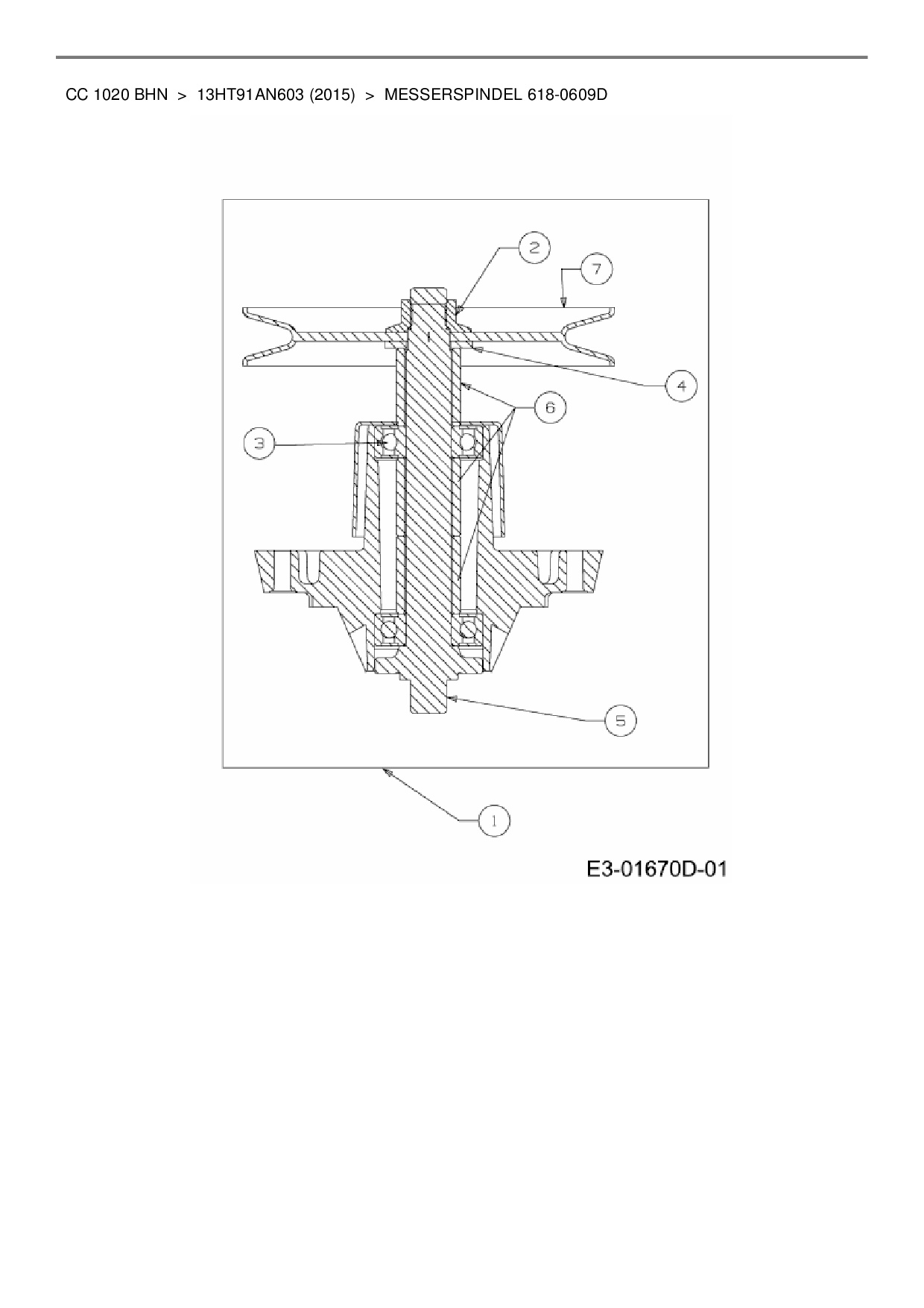 Ersatzteile für Rasentraktor Cub Cadet CC 1020 BHN aus der Zeichnung Messerspindel 618-0609D: