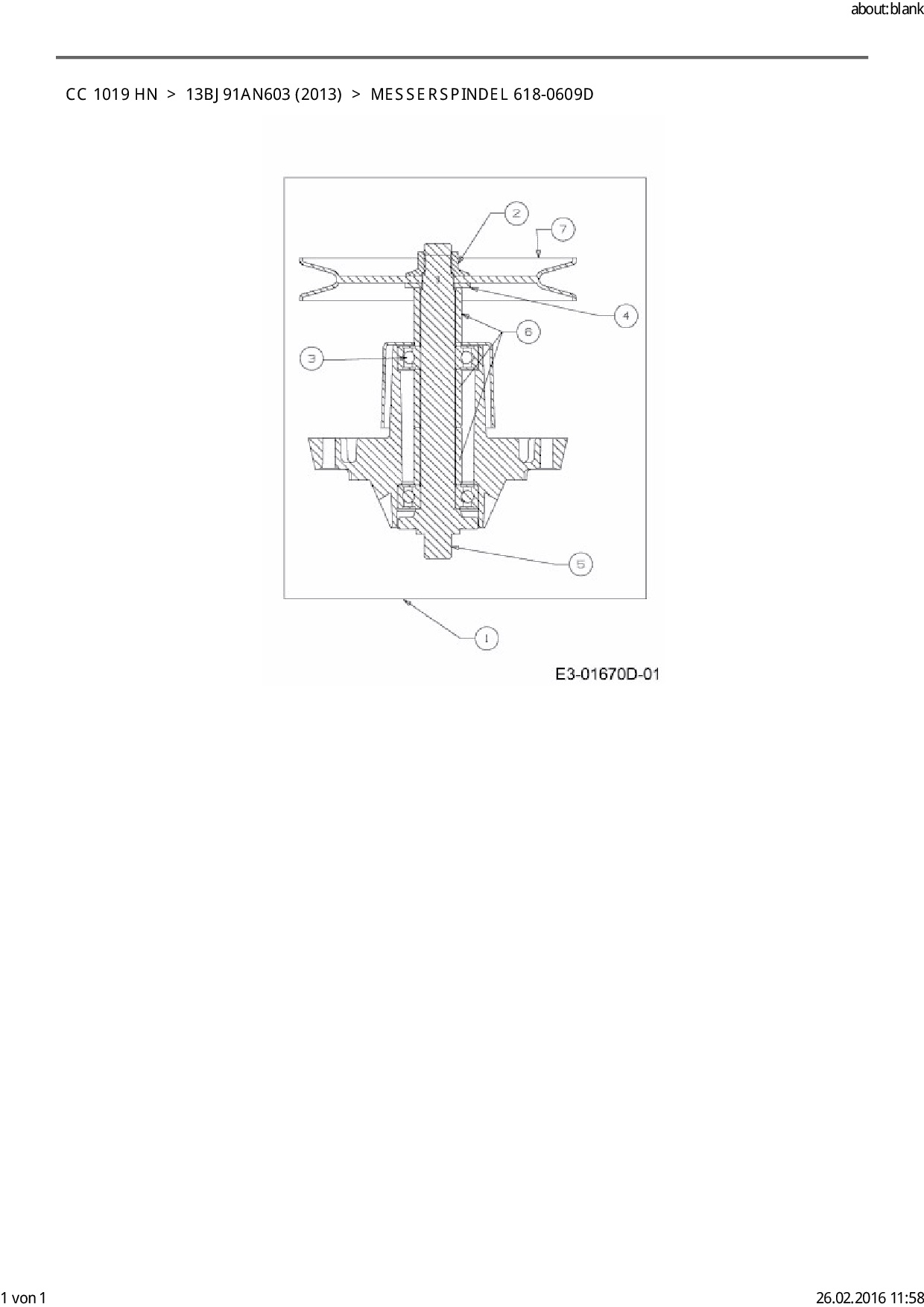 Ersatzteile für Rasentraktor Cub Cadet CC 1019 HN aus der Zeichnung Messerspindel 618-0609D: