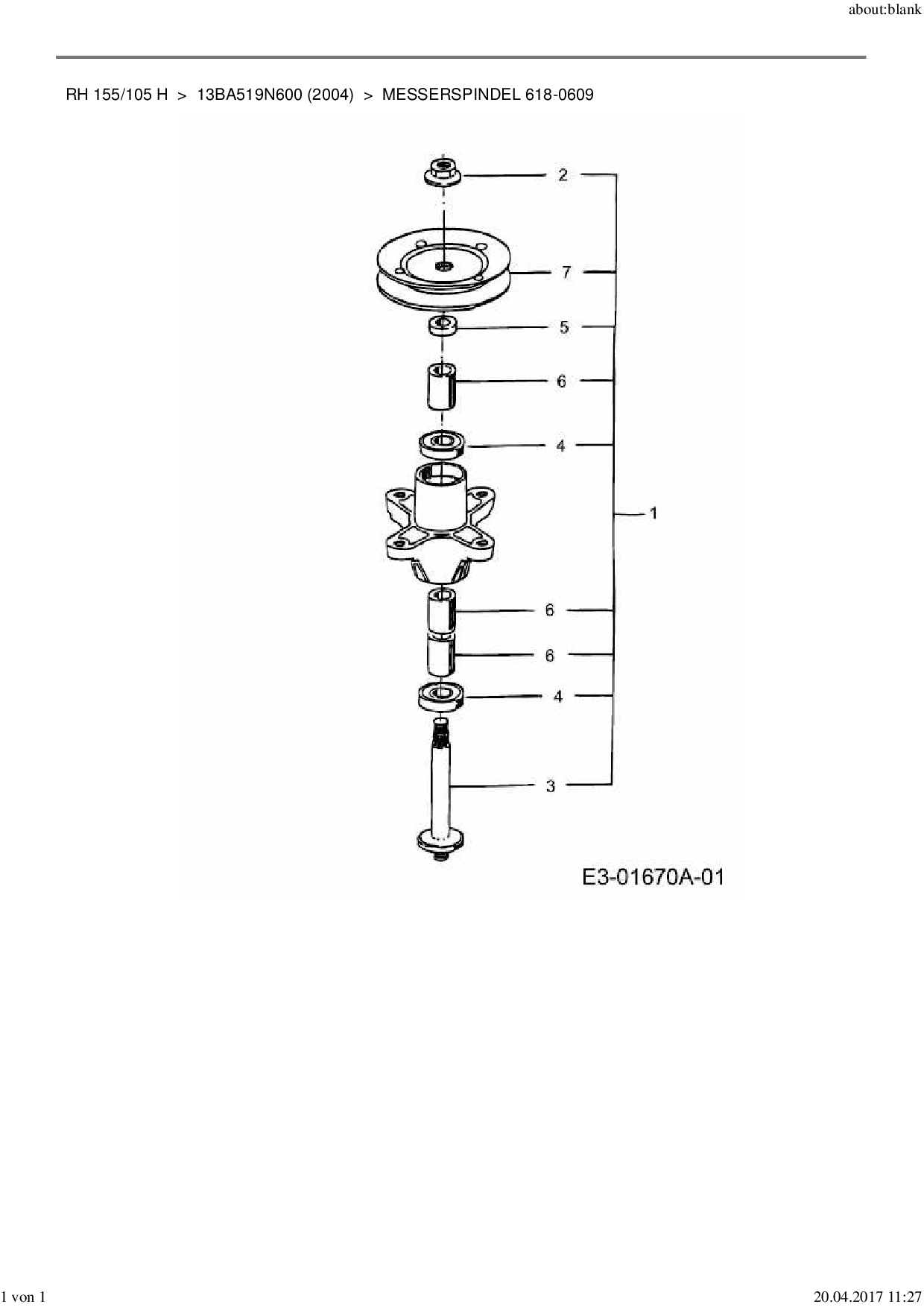 Ersatzteile für Rasentraktor MTD RH 155/105 H aus der Zeichnung Messerspindel 618-0609: