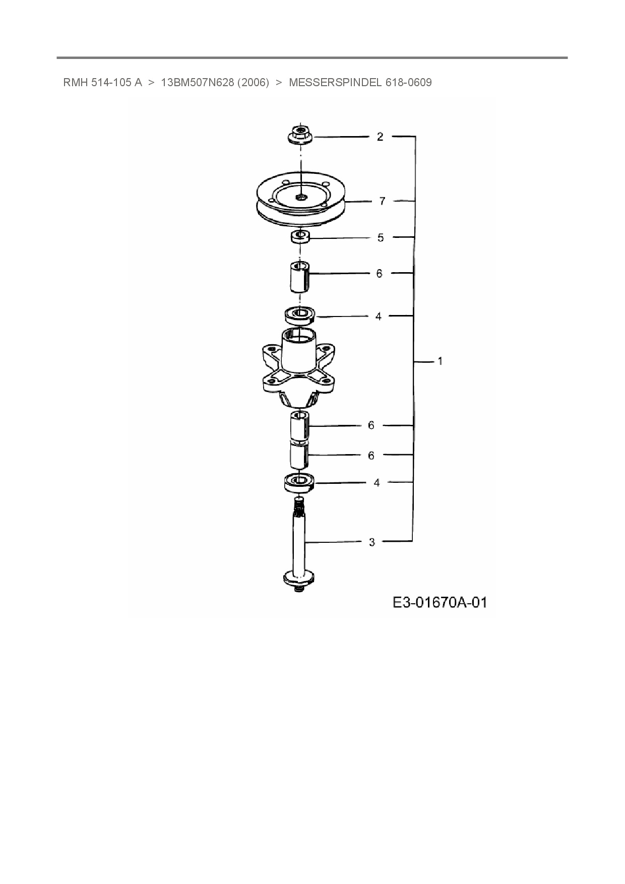 Ersatzteile für Rasentraktor Raiffeisen RMH 514-105 A aus der Zeichnung Messerspindel 618-0609: