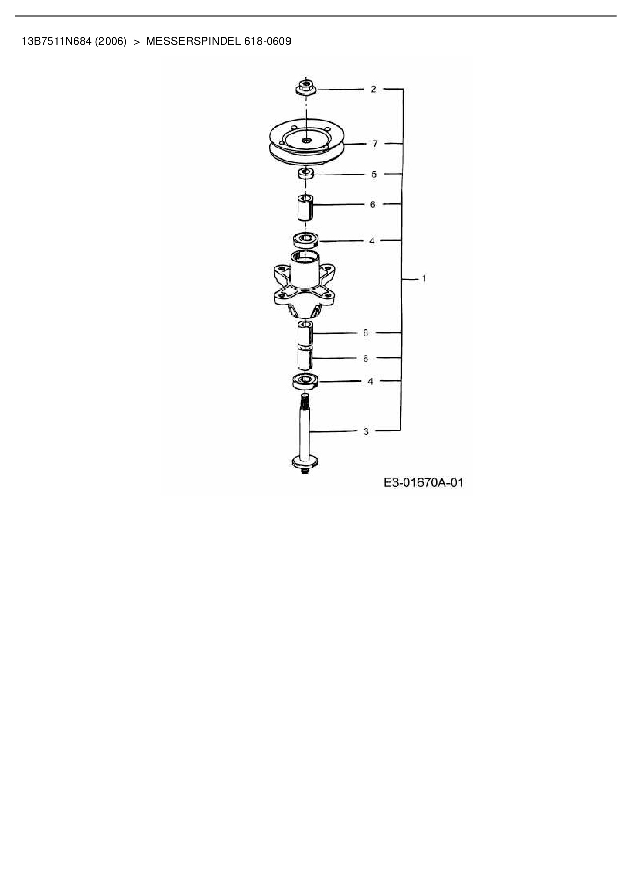 Ersatzteile für Rasentraktor Bolens BL 200/105 H aus der Zeichnung Messerspindel 618-0609: