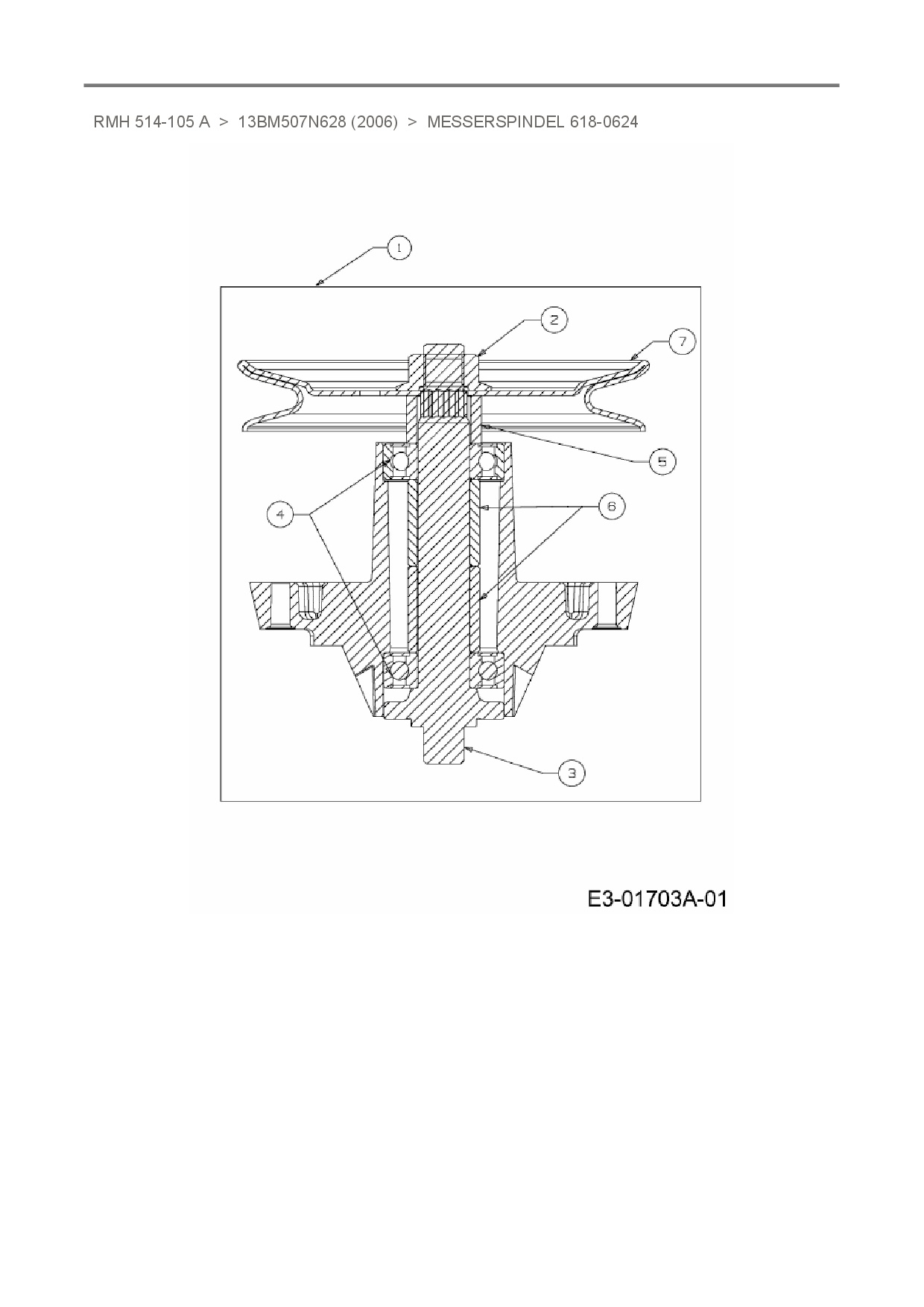 Ersatzteile für Rasentraktor Raiffeisen RMH 514-105 A aus der Zeichnung Messerspindel 618-0624: