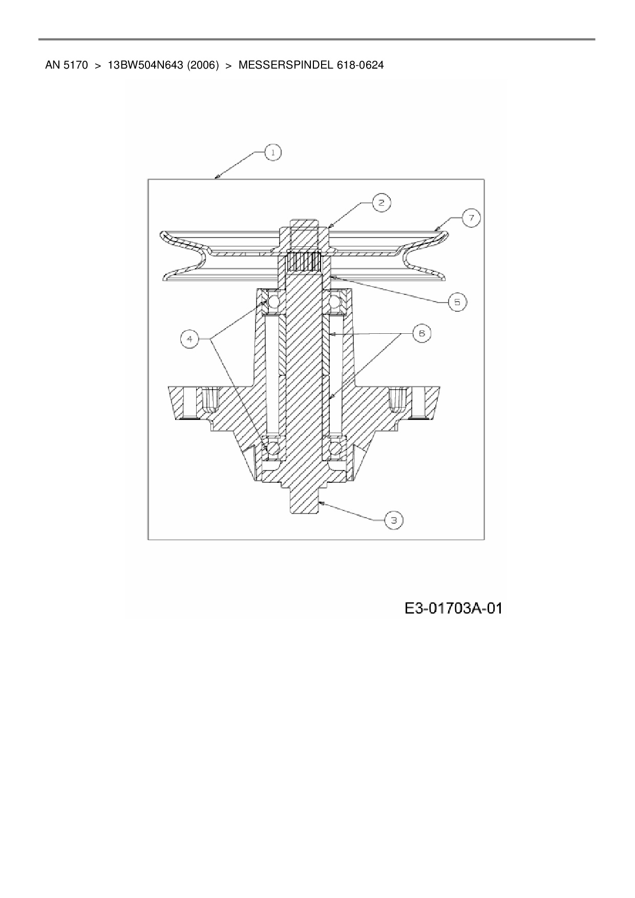 Ersatzteile für Rasentraktor Yard-Man AN 5170 aus der Zeichnung Messerspindel 618-0624:
