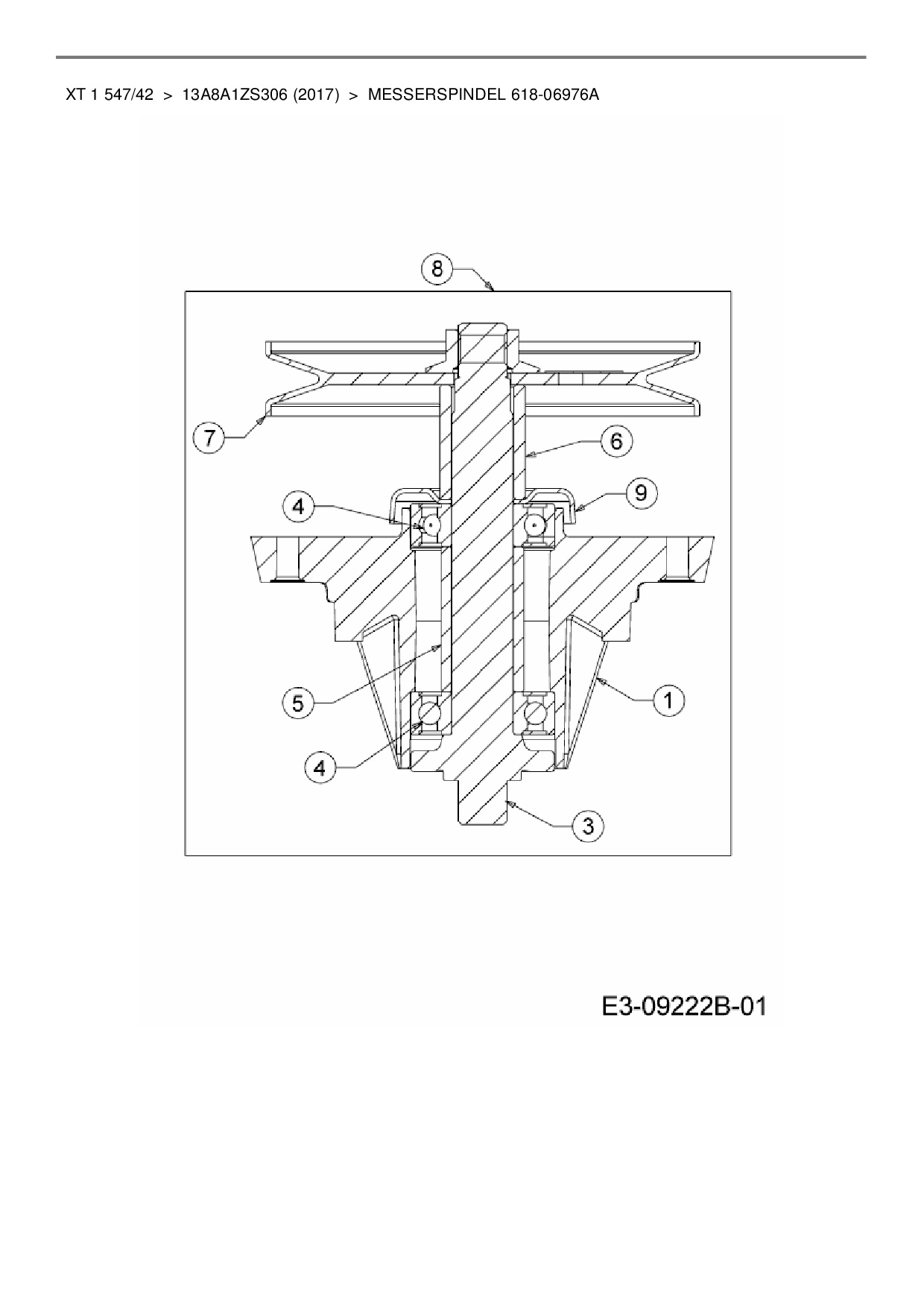 Ersatzteile für Rasentraktor MTD XT 1 547/42 aus der Zeichnung Messerspindel 618-06976A: