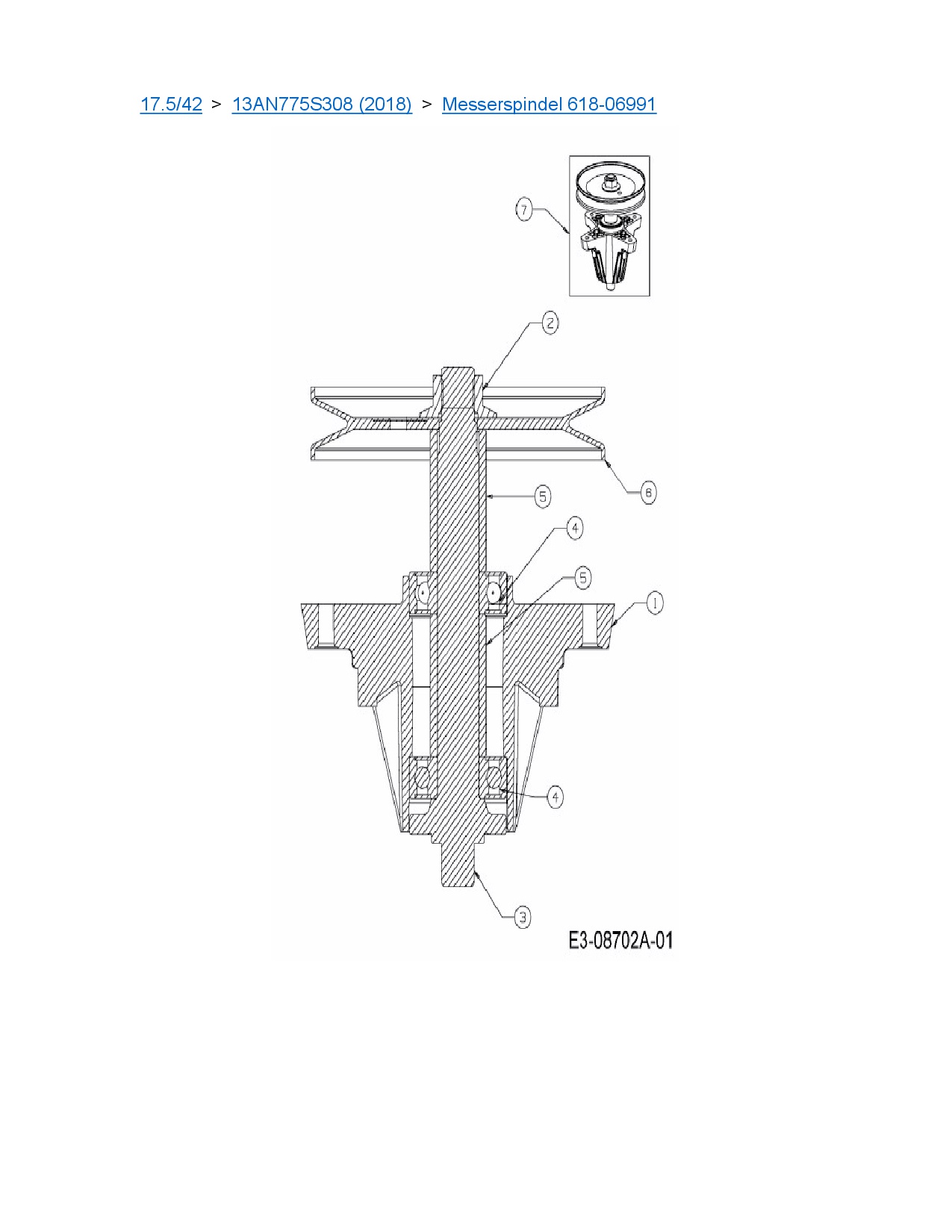 Ersatzteile für Rasentraktor MTD 17.5/42 aus der Zeichnung Messerspindel 618-06991: