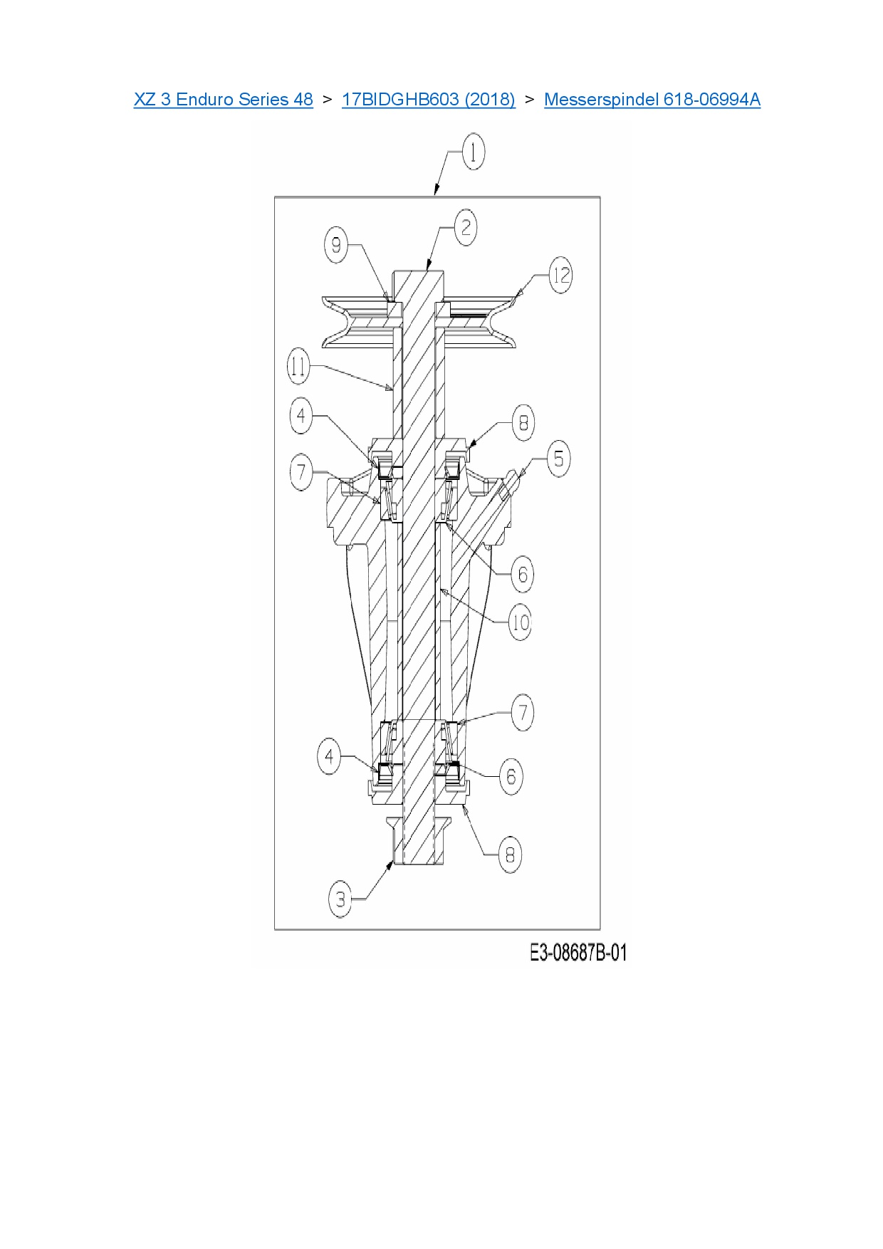 Ersatzteile für Zero Turn Cub Cadet XZ 3 Enduro Series 48 aus der Zeichnung Messerspindel 618-06994A: