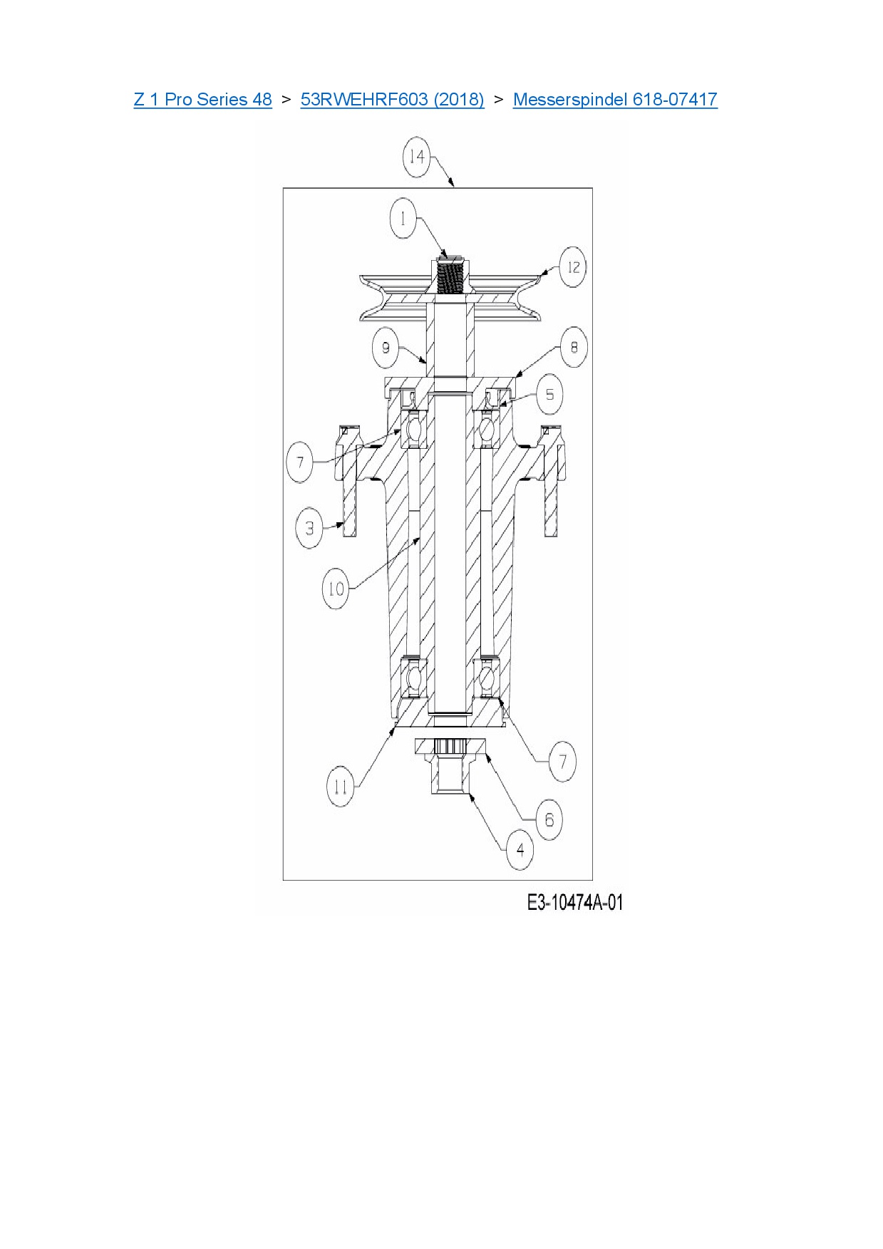 Ersatzteile für Zero Turn Cub Cadet Z 1 Pro Series 48 aus der Zeichnung Messerspindel 618-07417: