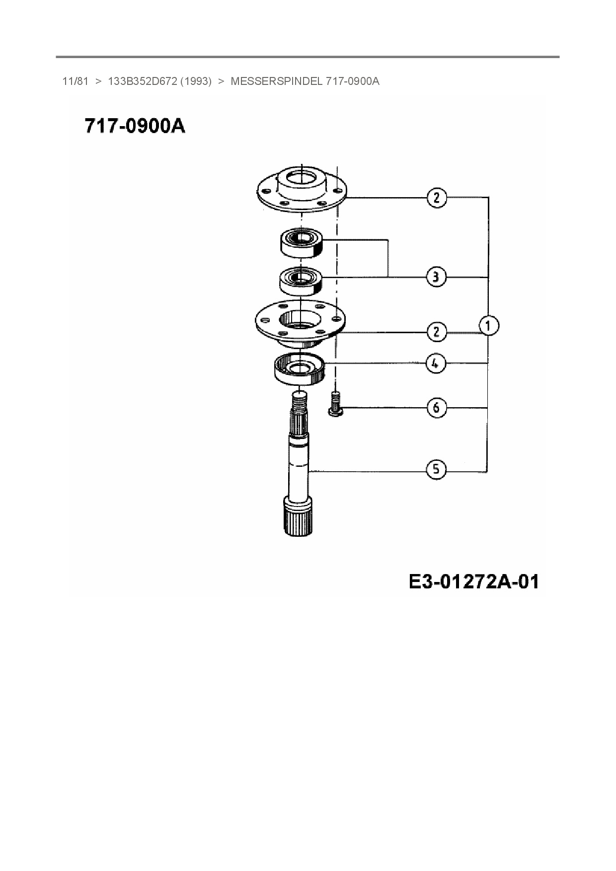 Ersatzteile für Rasentraktor White 29891 aus der Zeichnung Messerspindel 717-0900A: