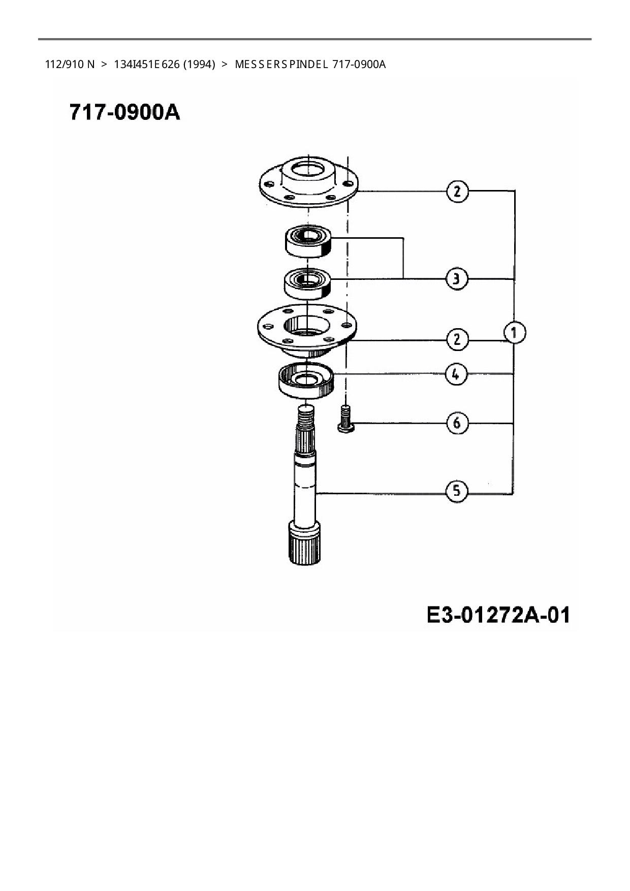 Ersatzteile für Rasentraktor Columbia 112/910 N aus der Zeichnung Messerspindel 717-0900A: