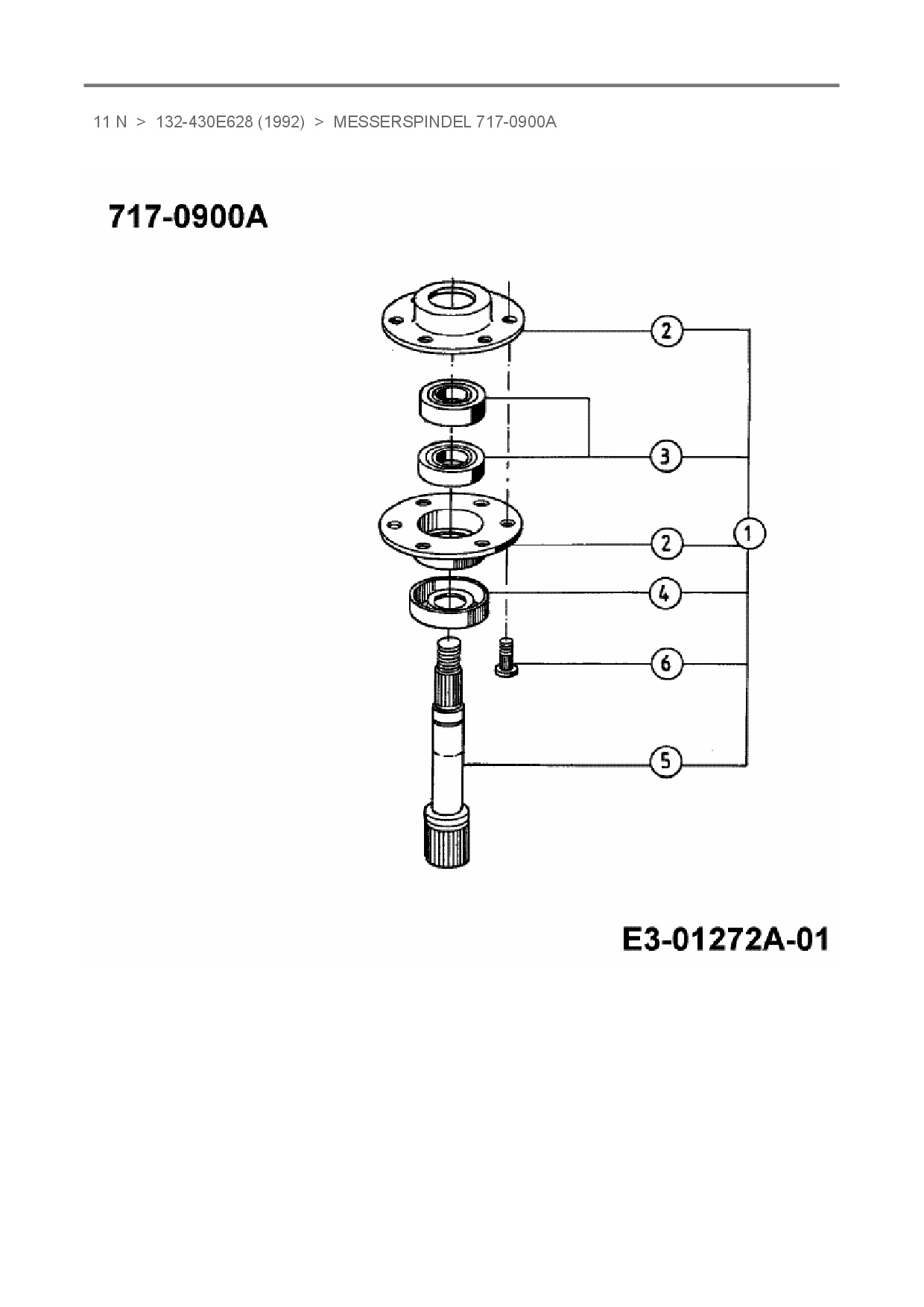 Ersatzteile für Rasentraktor Raiffeisen 11 N aus der Zeichnung Messerspindel 717-0900A: