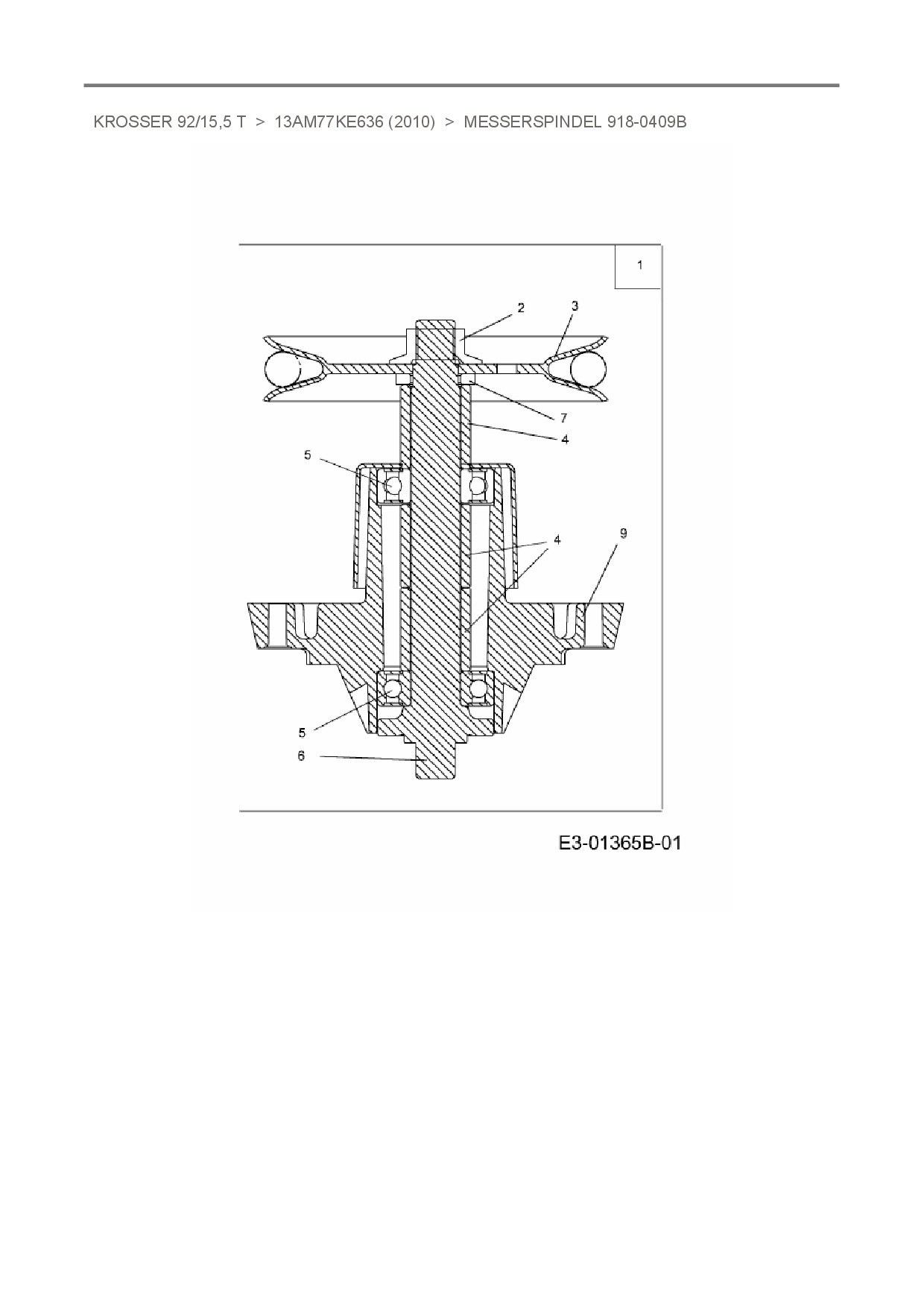 Ersatzteile für Rasentraktor Oleo-Mac Krosser 92/15,5 T aus der Zeichnung Messerspindel 918-0409B: