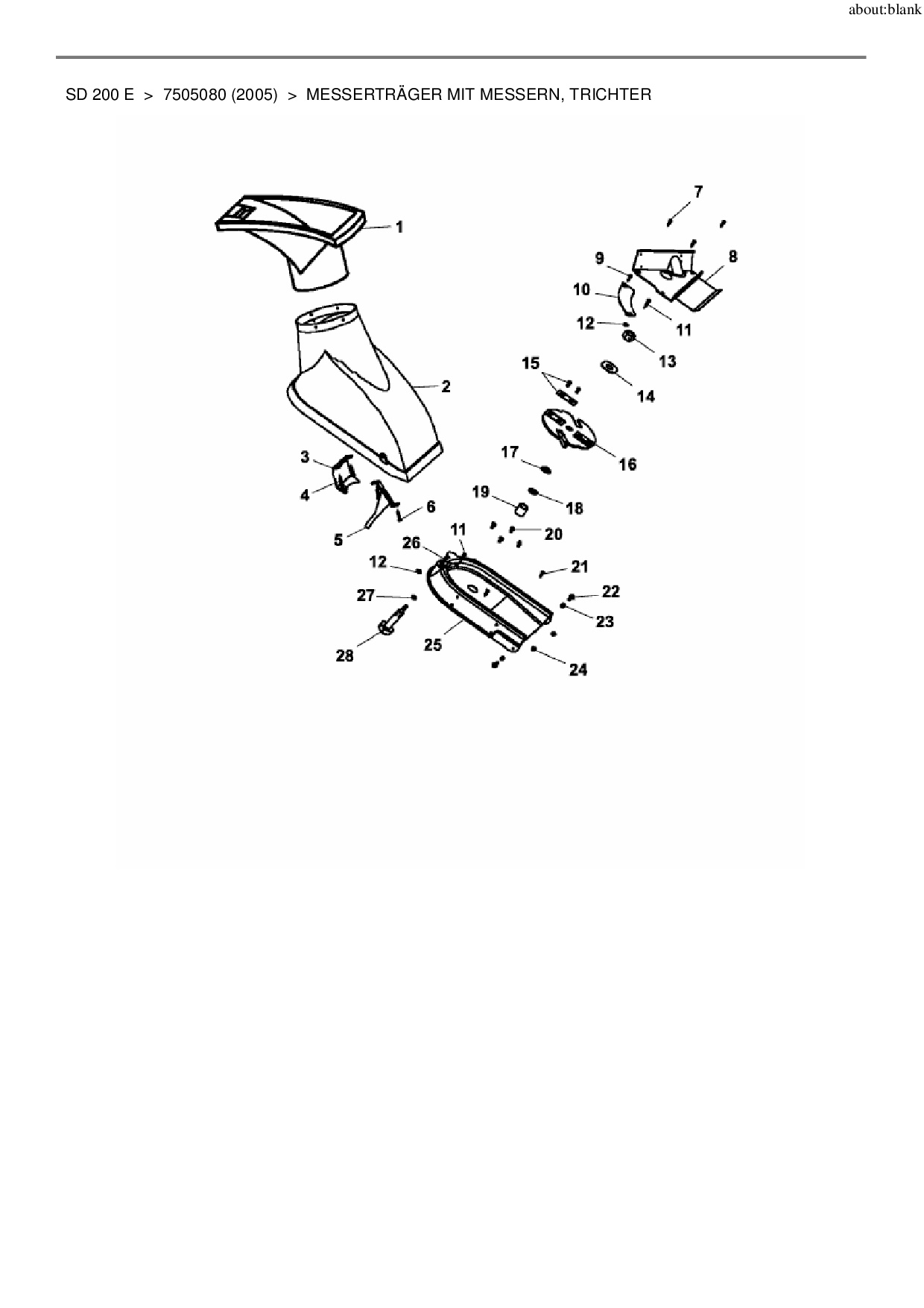 Ersatzteile für Häcksler Wolf-Garten SD 200 E aus der Zeichnung Messerträger mit Messern, Trichter: