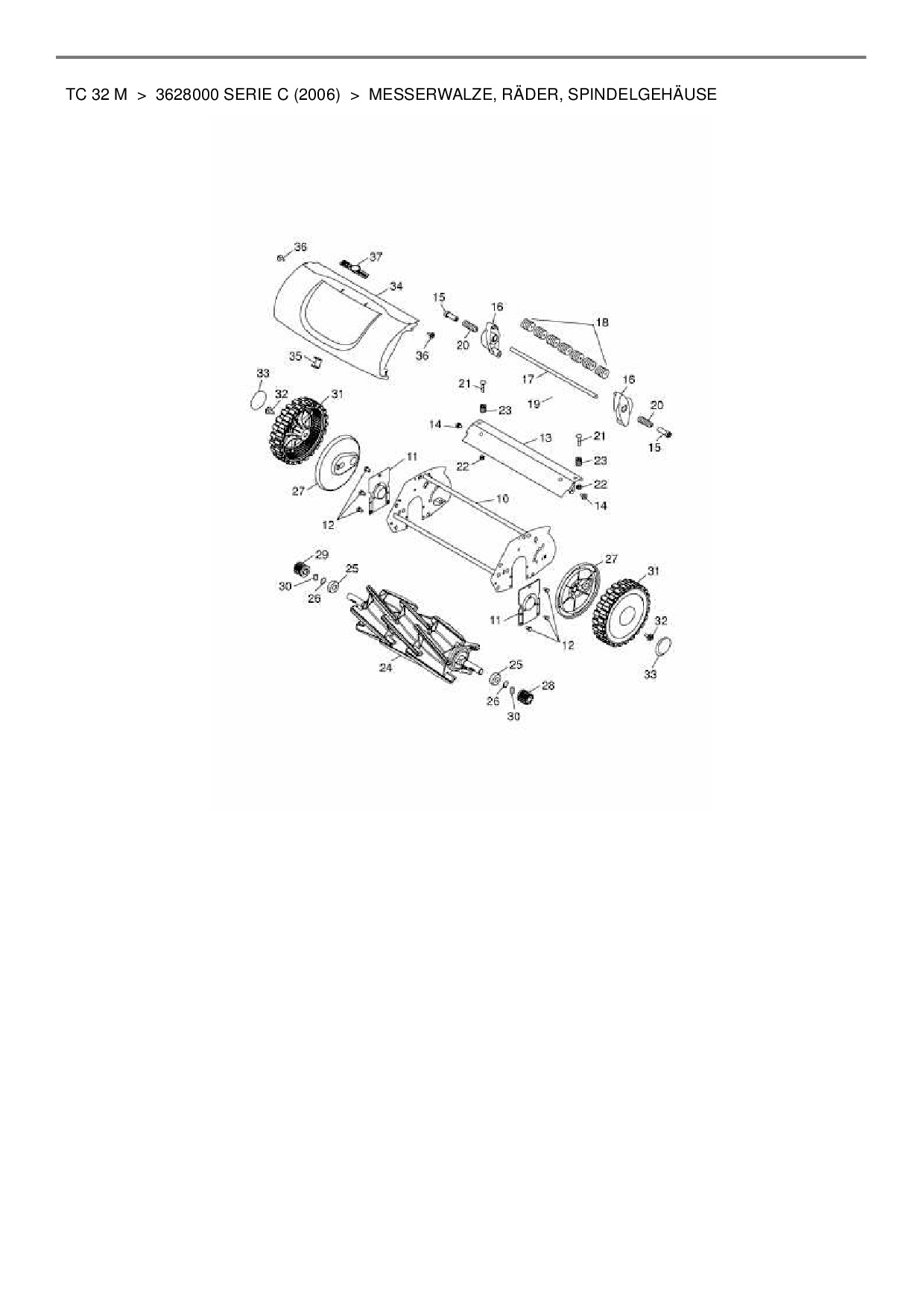 Ersatzteile für Spindelmäher Wolf-Garten TC 32 M aus der Zeichnung Messerwalze, Räder, Spindelgehäuse: