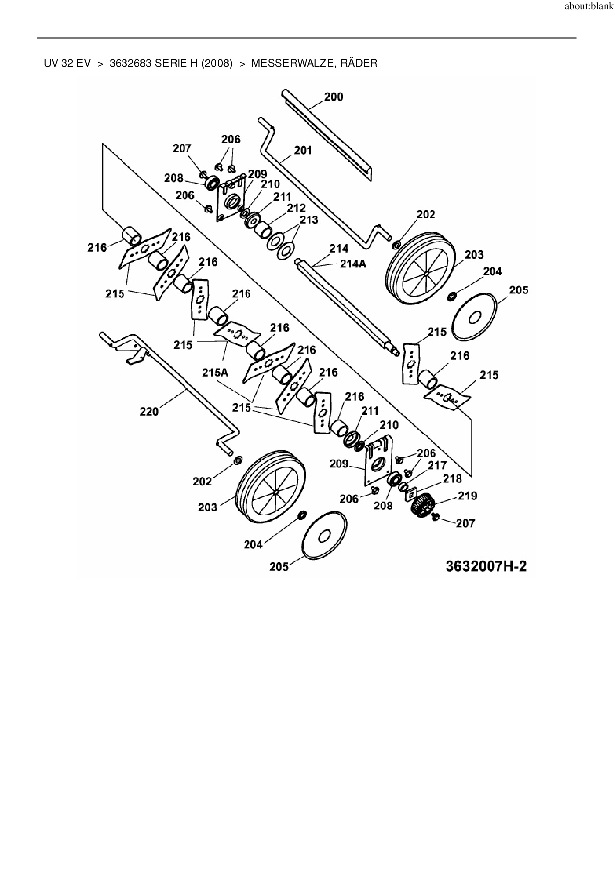 Zeichnung für Wolf-Garten Elektrovertikutierer UV 32 EV mit der Geräte-Artikelnr. 3632683 Serie H ab Baujahr 2008: