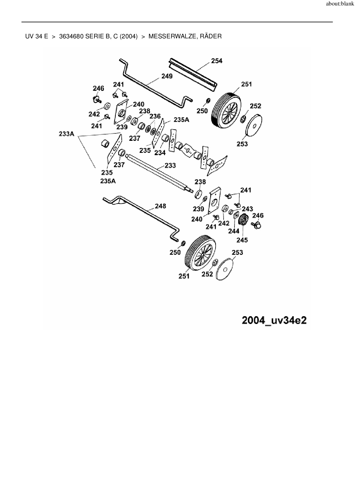 Ersatzteile für Elektrovertikutierer Wolf-Garten UV 34 E aus der Zeichnung Messerwalze, Räder: