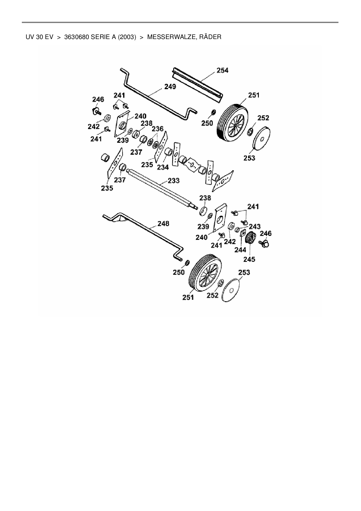 Download Ersatzteil-Zeichnung Wolf-Garten UV 30 EV Zeichnung Messerwalze, Räder (PDF-Format)