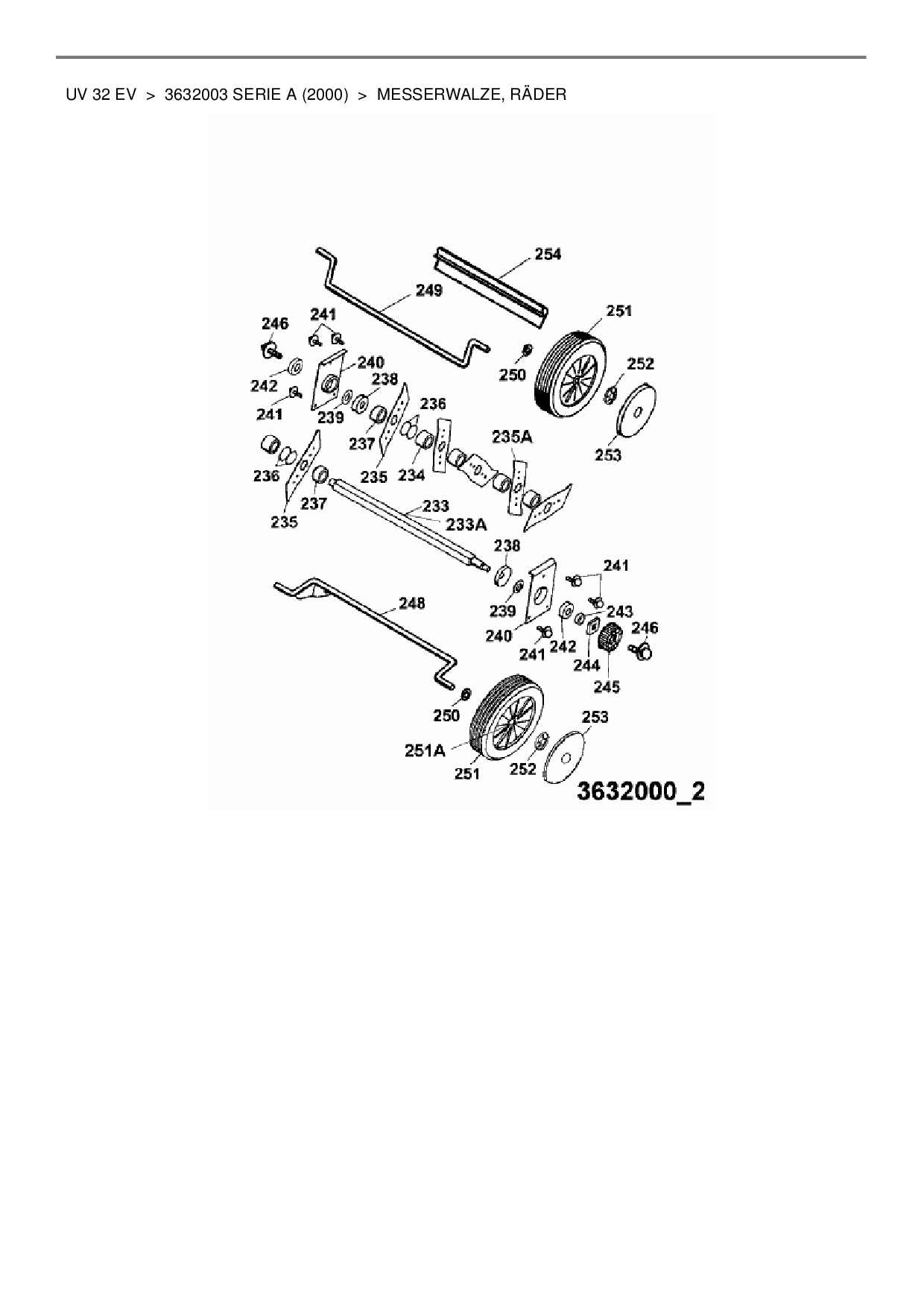 Zeichnung für Wolf-Garten Elektrovertikutierer UV 32 EV mit der Geräte-Artikelnr. 3632003 Serie A ab Baujahr 2000: