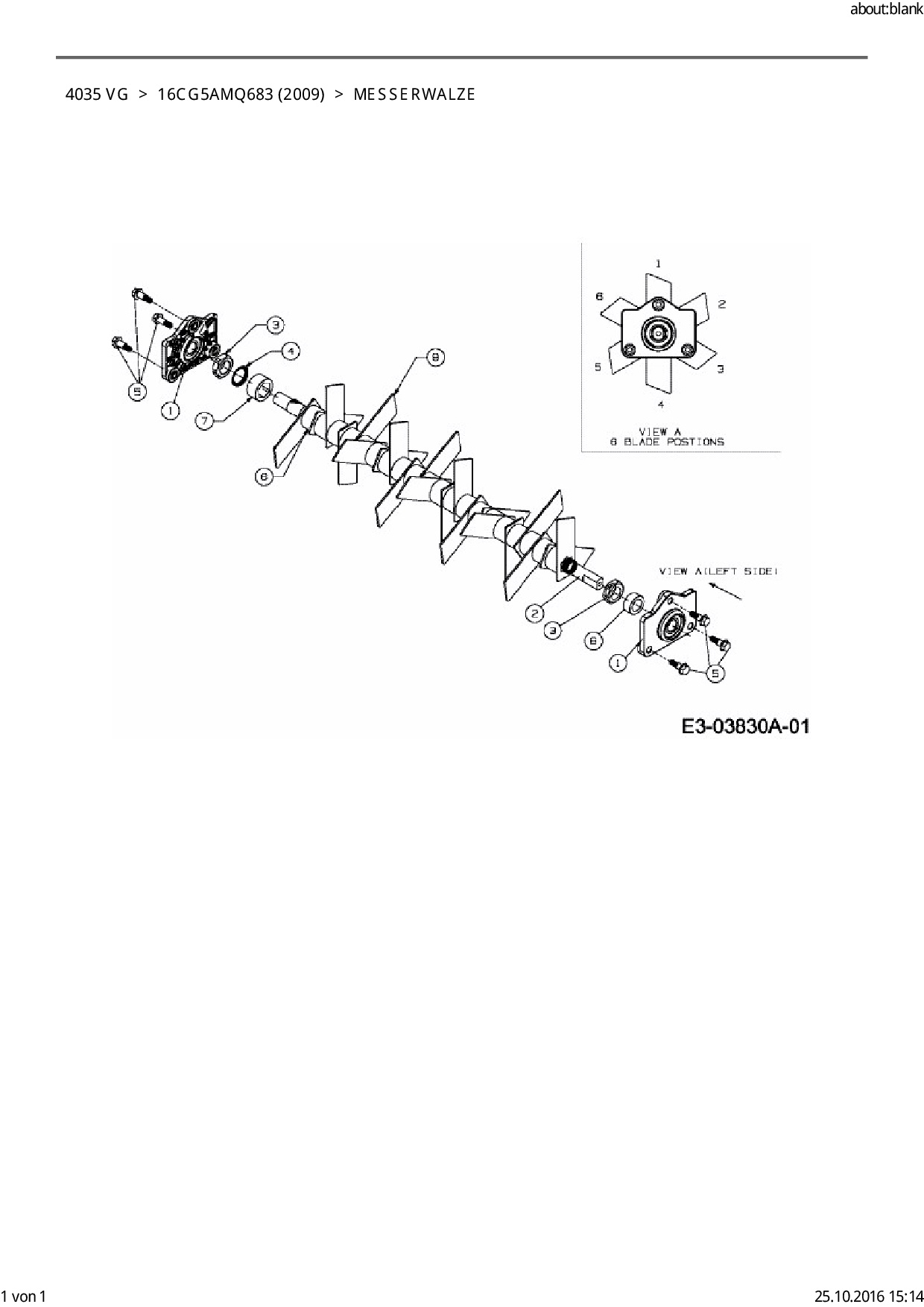 Ersatzteile für Motorvertikutierer Black-Line 4035 VG aus der Zeichnung Messerwalze: