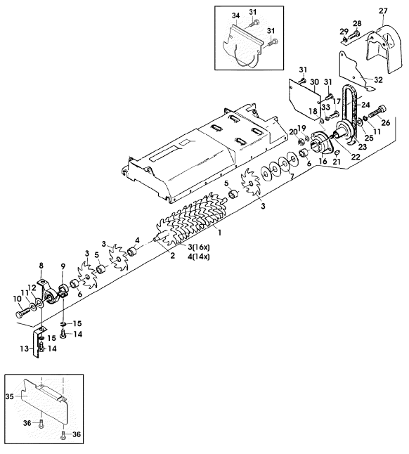 Zeichnung Sabo Vertikutierer Benzin Vertikutierer 45-220 EDV-NR.SA268 Messerwelle, -antrieb: