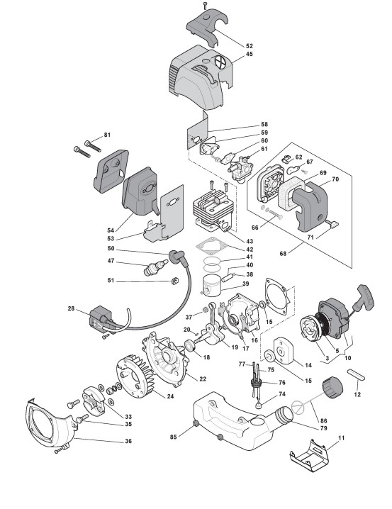 Hier finden Sie alle Ersatzteile von Castelgarden Benzin Freischneider XB 34 (280820003/10) ab 2012 aus der Zeichnung Motor (1):